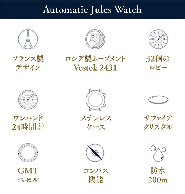 あなたも【Automatic Jules Watch】でフランス高級機械式腕時計の真髄をご堪能ください。