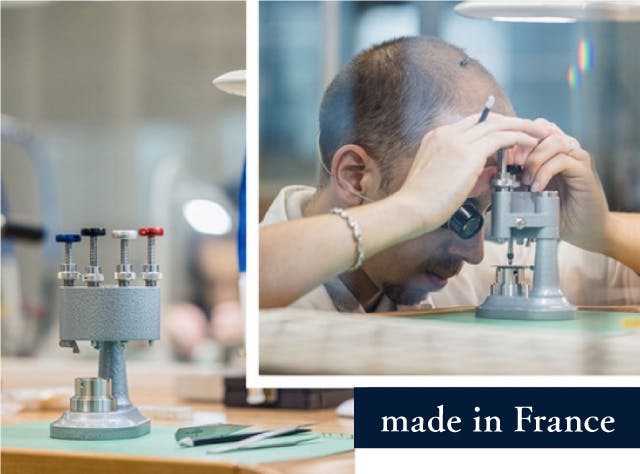 A:私たちの時計のデザインは、パリの時計製造工場で行われています。私たちのチームは、細部に細心の注意を払って、各ケース、各文字盤、各針を設計しています。