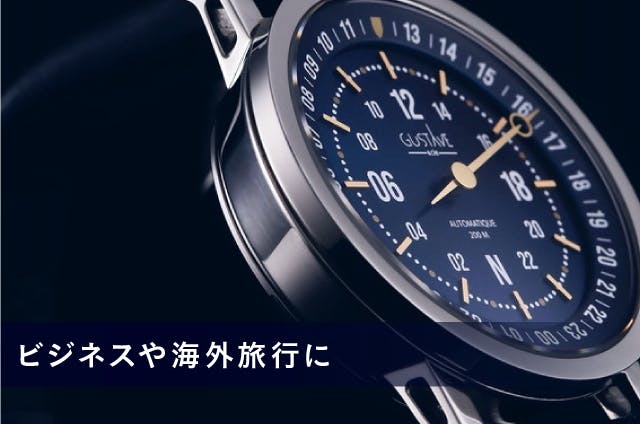 リューズで内部ベゼルも回転するので、本国と時差のある海外との取引や海外出張などで現地時間と合わせておけば、頭の中で時差を計算することなく時刻を確認できます。