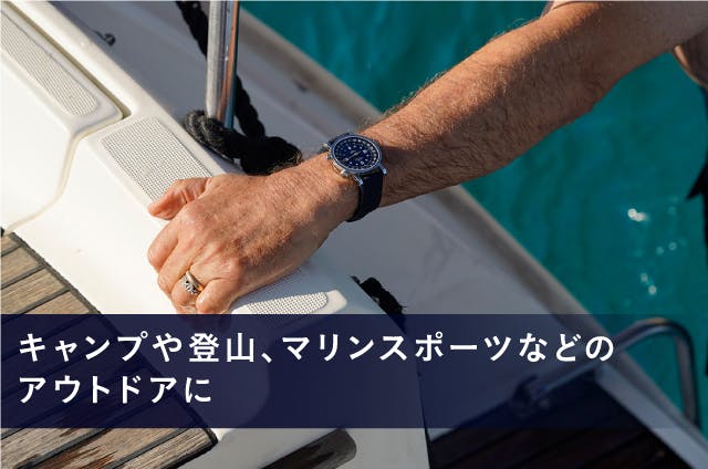 丈夫で耐久性が高く、腐食にも強いステンレススチールのケースに、硬度9の宝石サファイアと同じ分子構造を持ち耐摩耗性に優れたサファイアグラスの風防を使っているので、ダイバーズウォッチ並みの耐久性を誇ります。