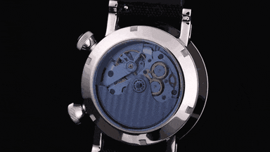 ケースの裏面はスケルトン仕様なのでムーブメントの歯車が規則正しく動いている姿は見ているだけでも楽しくなります。