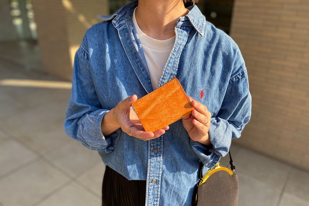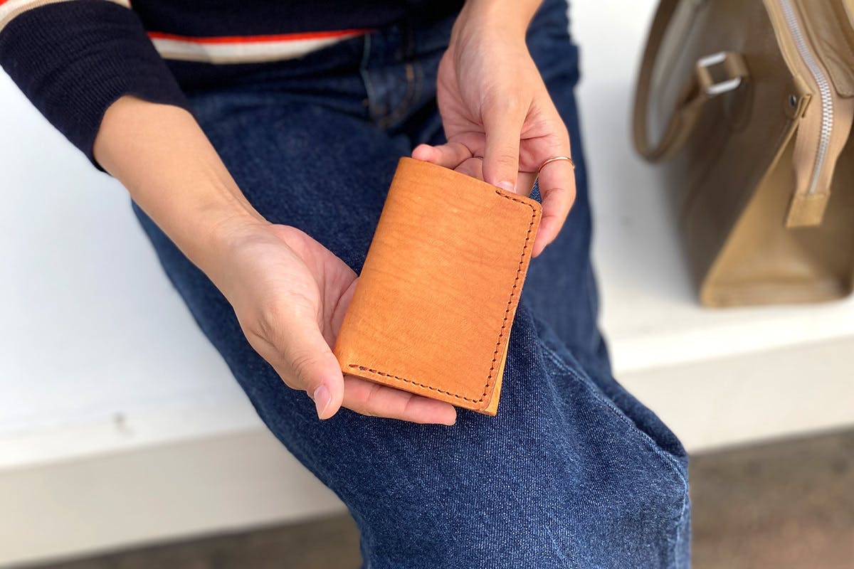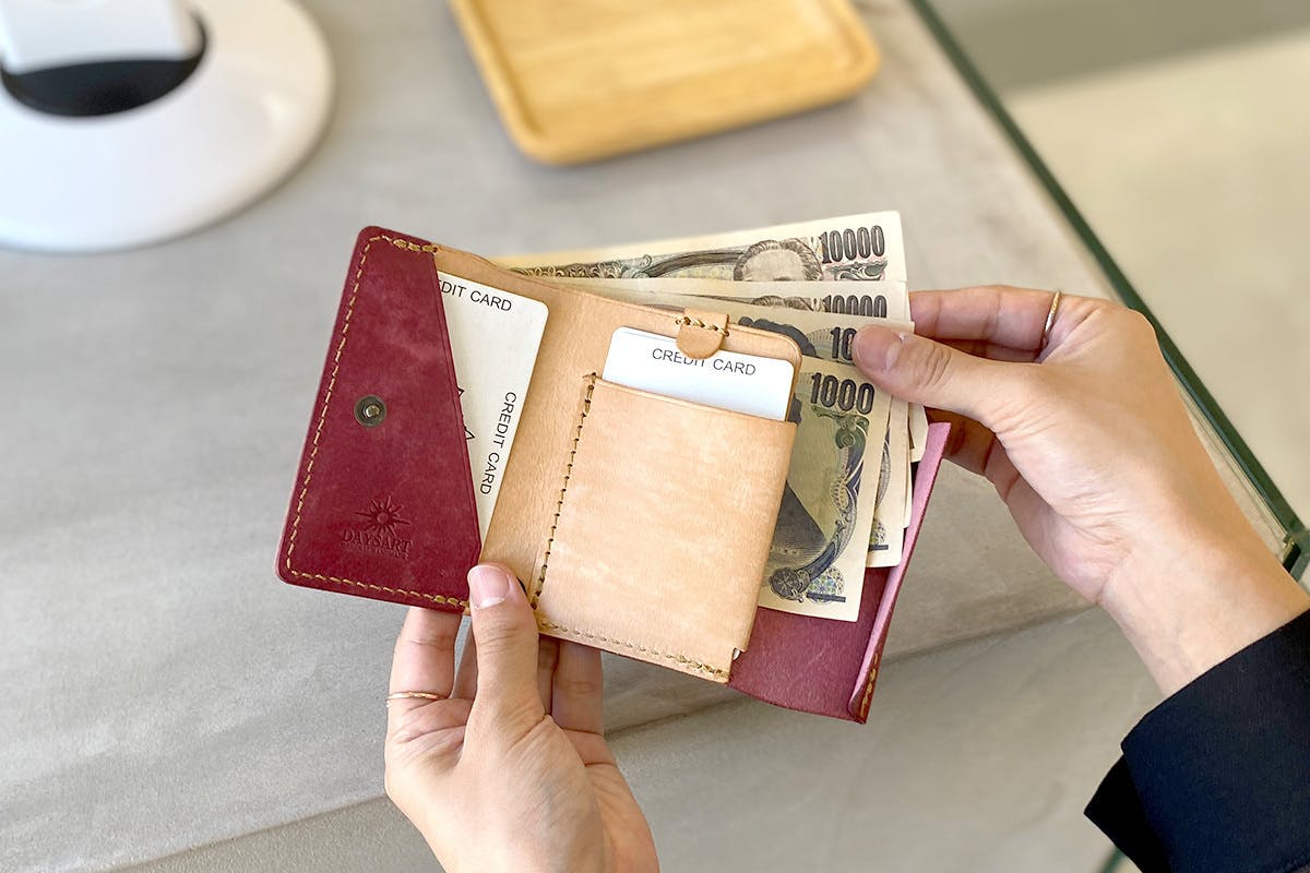 カード枚数に革が馴染むと革が柔らかくなり、収納枚数を減らすとカードが抜けやすくなります。