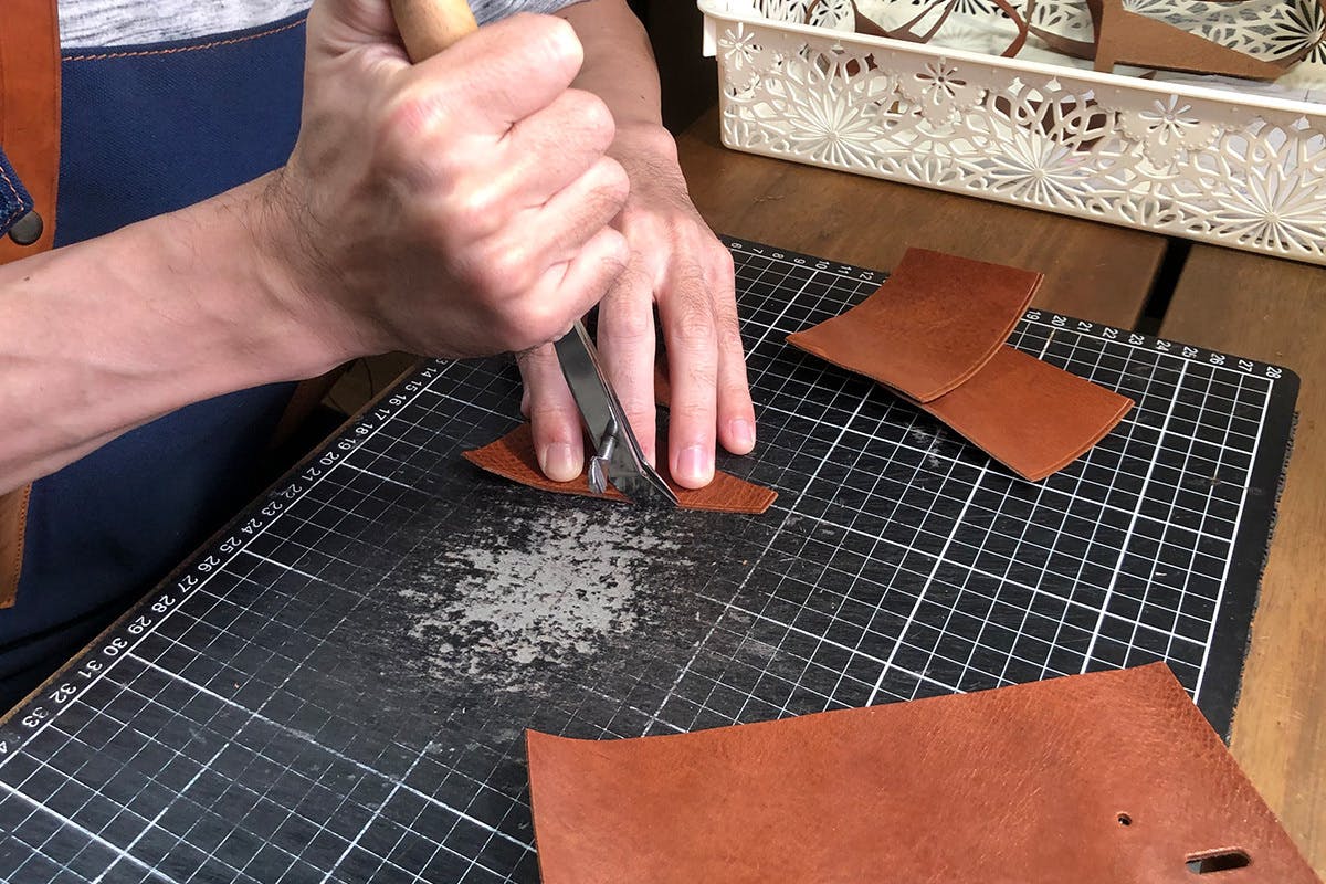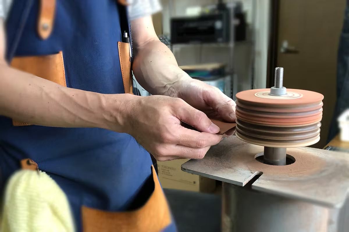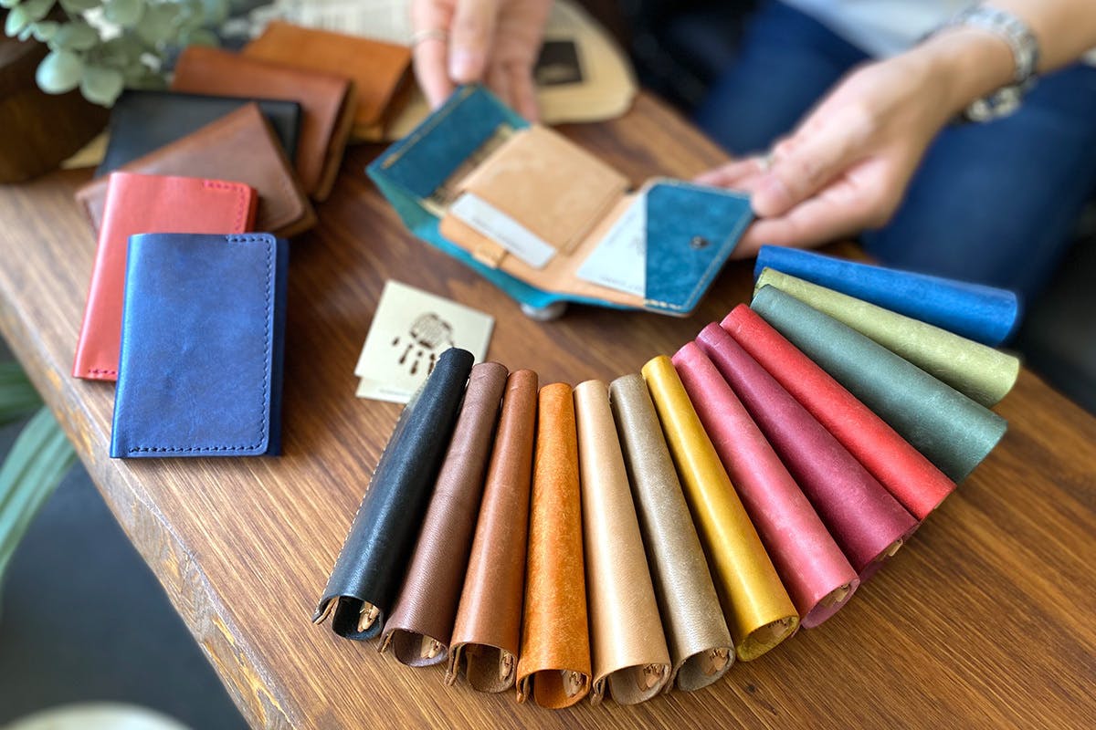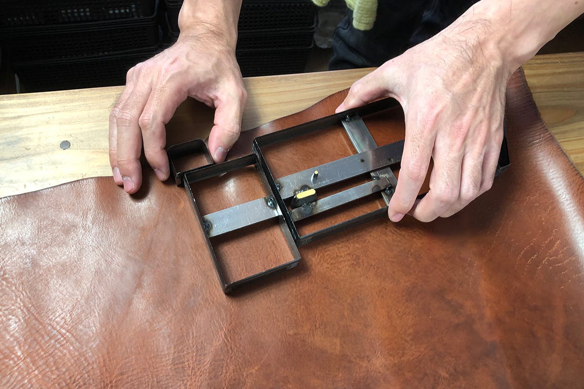 元々2㎜厚の革を敢えて1㎜厚まで薄く加工することで革本来のしなやかさと軽さを体現頂けます。