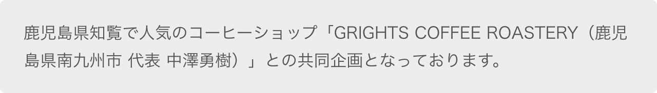 この企画にあたり、※鹿児島県南九州市知覧町郡で人気のコーヒーショップでコーヒーショップを営む「GRIGHTS COFFEE ROASTERY」さんに親身にご協力いただき、ようやく納得感のあるコーヒーに辿り着くことができました。