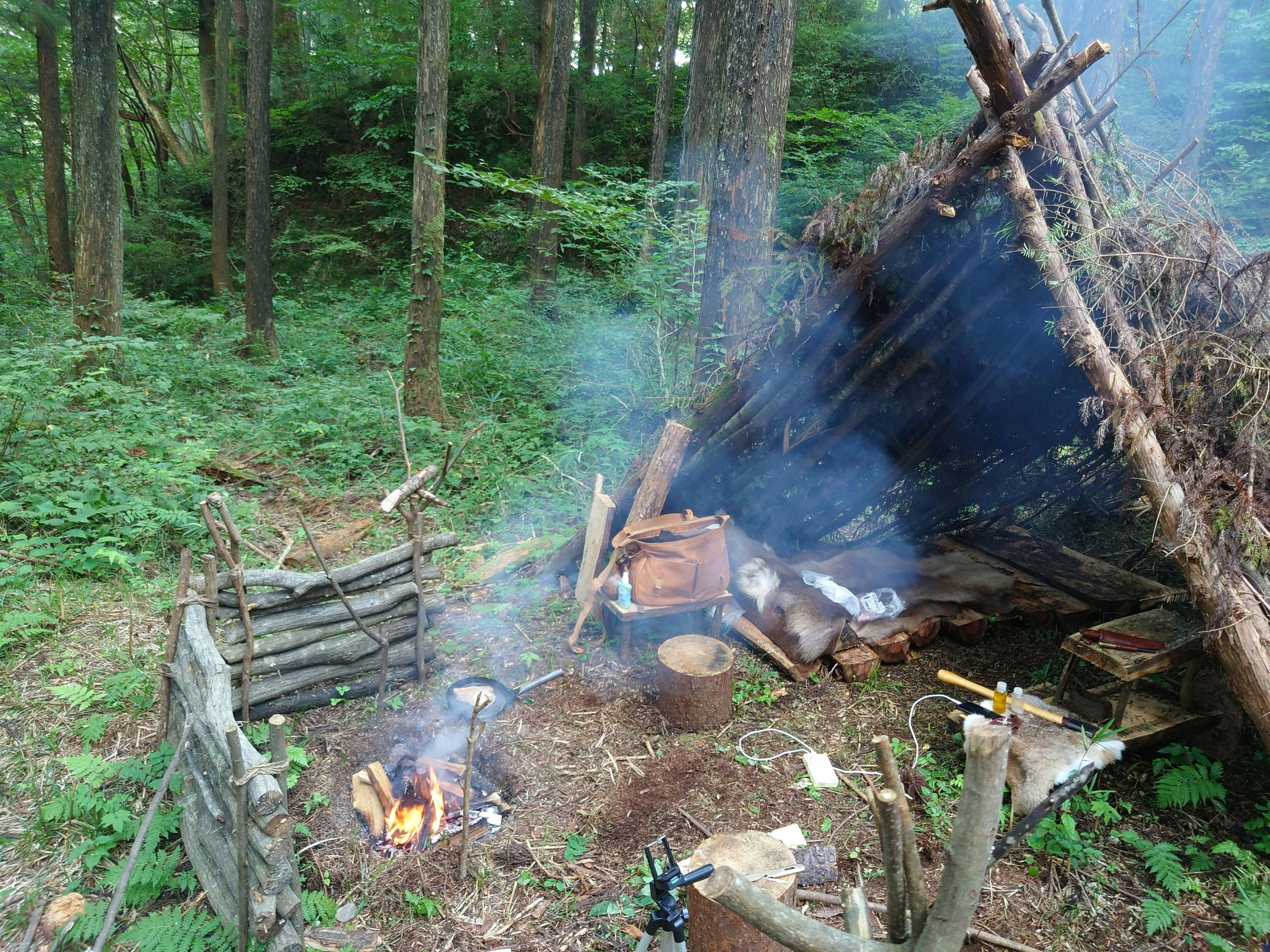 写真は、那須高原ITAMUROキャンプ場ブッシュクラフトスペシャルアドバイザー和さんが10日間泊まり込みで製作いたしましたシェルター、その名も「クラフトガーデン」です!!