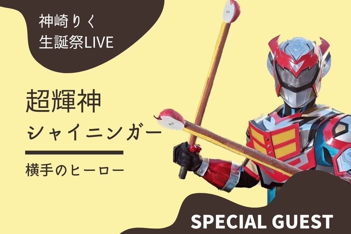 ゲスト1組目は、横手市のローカルヒーロー「超輝神シャイニンガー」です。いぶりがっこん棒や大雄ホップガンなど横手の名産を使った武器を使い、宿敵ダーク・アーミーと戦うシャイニンガー。ライブ当日は、どのようなヒーローショーを繰り広げられるか・・・、皆様、是非お楽しみに!