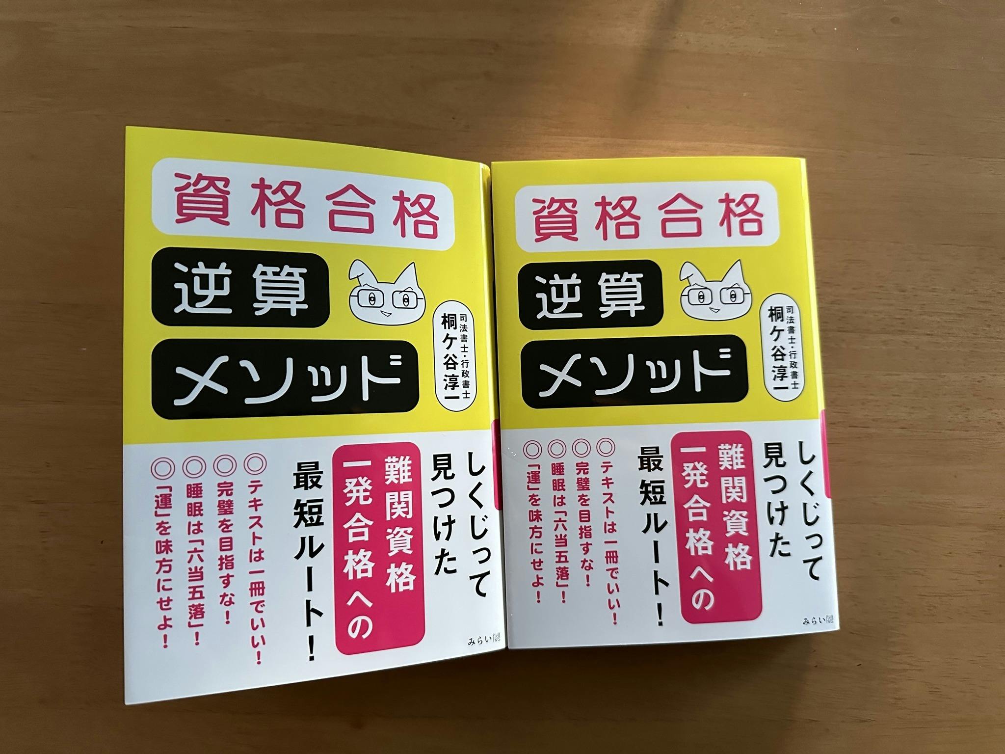 司法書士・行政書士の桐ケ谷淳一(きりじゅん)と申します。この度初の書籍となる「資格合格逆算メソッド」(みらいパブリッシング)を刊行することになりました。