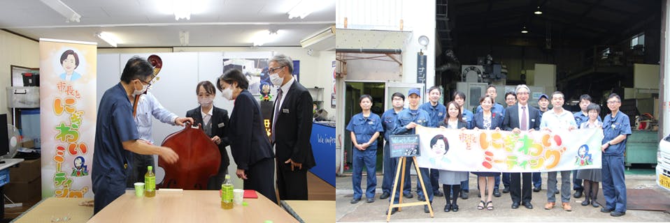 2021年10月の「市長とにぎわいミーティング」では「分解できるコントラバス」が出来上がるまでのお話をお伺いし、製作にあたる経緯や背景、御苦労されたことなど、たくさんのお話を聴かせていただいたことを覚えています。企業同士が交流・連携を行い、新たな製品や価値が産み出された良き先例です。