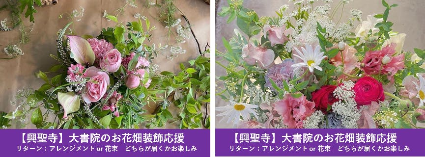 ①ご支援額3,850円、4,950円「アレンジor花束どちらが届くかお楽しみ」の発送:宇治市より4月24日発送予定
