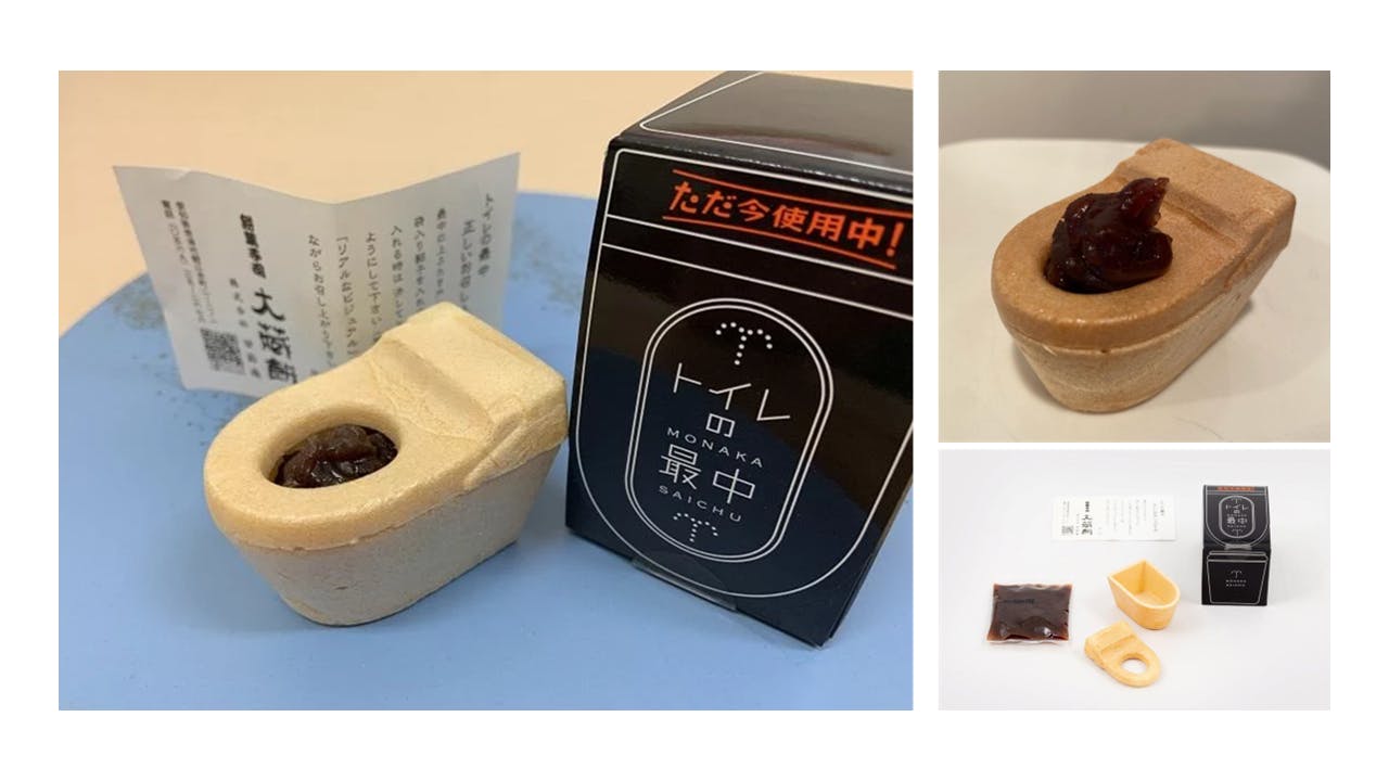 袋入りの餡をトイレ型のもなか皮につめてご賞味いただけ、LIXIL様の協力のもとトイレの形をリアルに再現することにも成功しました。