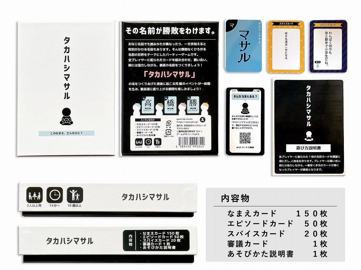 ゲームが終わる頃には、終始笑いがとまらない盛りあがりと「タカハシマサル」の崇高な名前に心ときめき、そして何気なく身近にある名前の奥深さに気づくことでしょう。