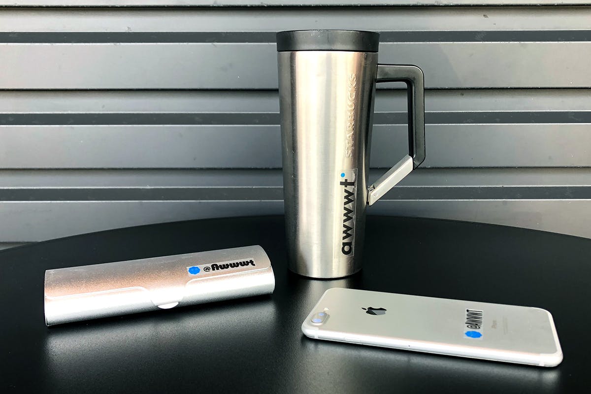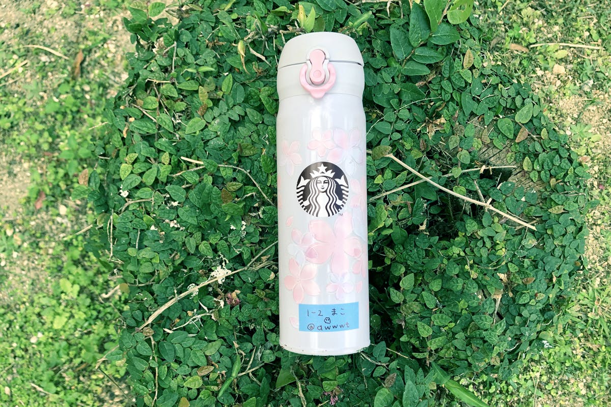 タンブラーにもこんな感じで、ユーザー名を書いたマスキングテープを貼ることで、失くしたときに連絡がくるようになります