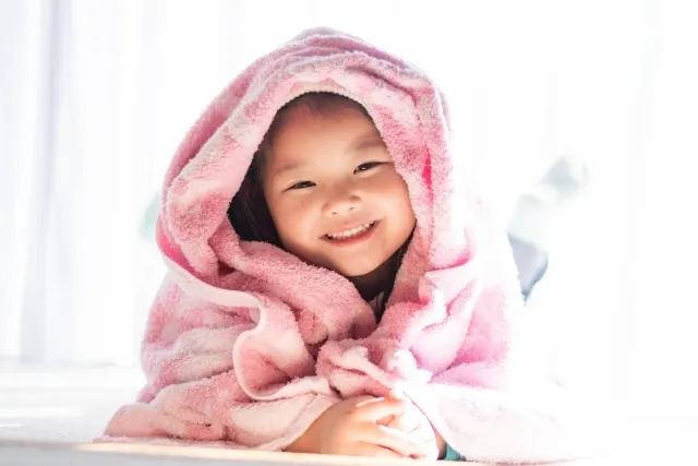タオルにくるまれるだけでやすらぐ今治タオル。もちろん吸水性もよいのでタオルドライにも最適。