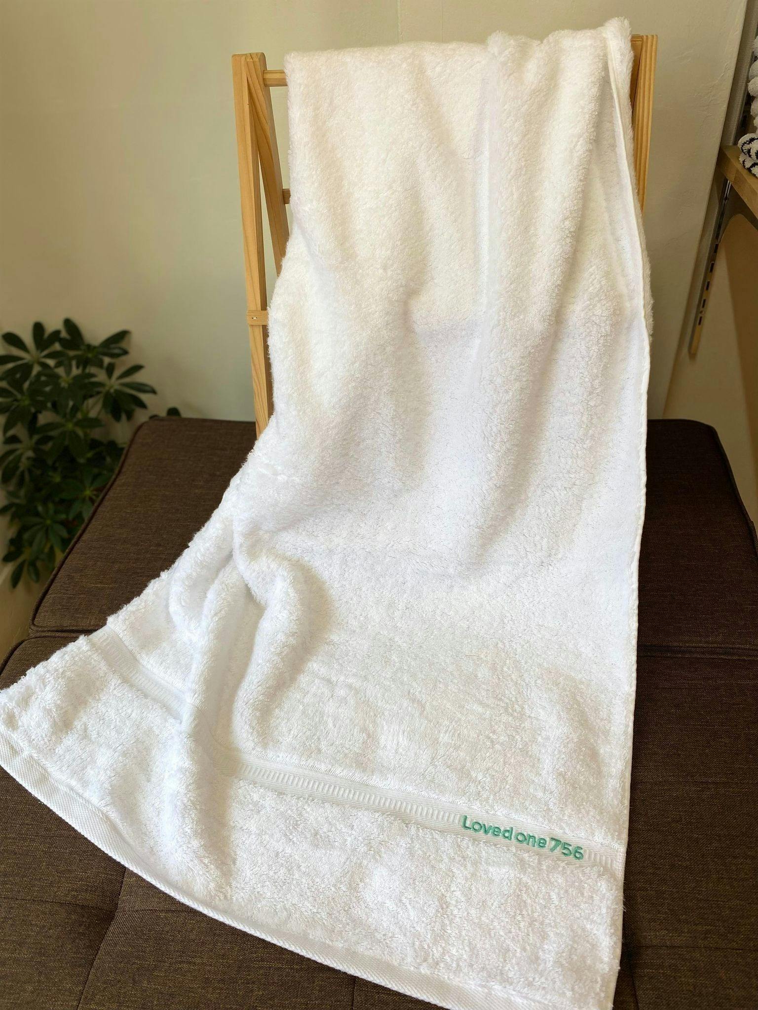 サイズは小さめのバスタオル。大切な人や家族と一緒に使いたい。