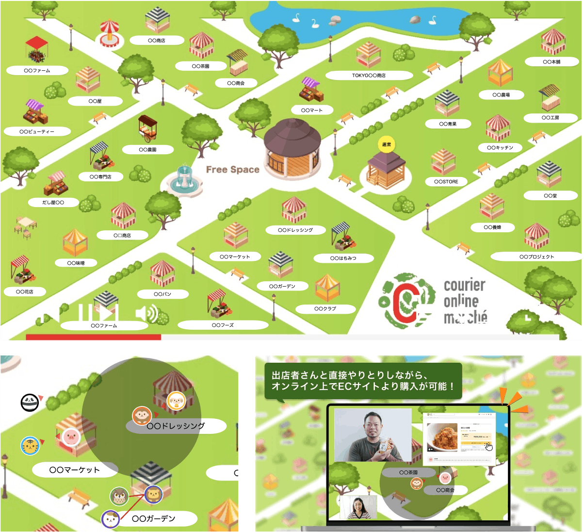 さらに、クーリエオンラインマルシェのプラットフォーム自体がリアルマルシェへの入り口として機能し、リアル・オンラインの相互集客も可能です。