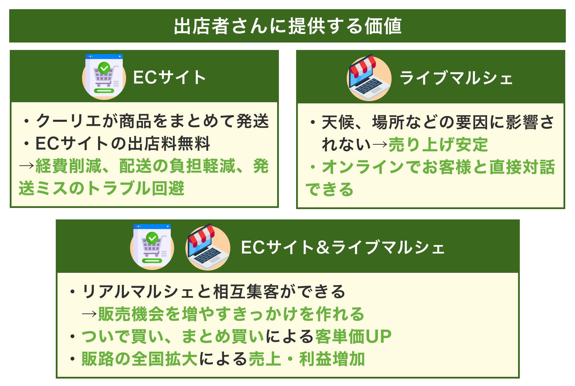 出店者さんにとっては以下のような価値を提供できます。