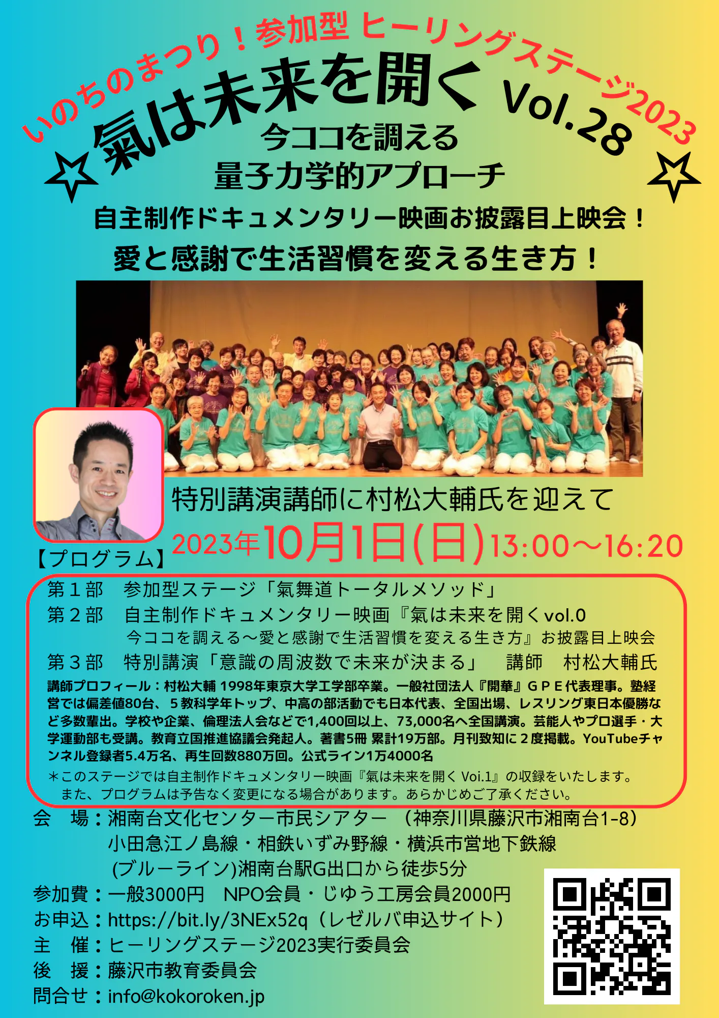 コロナ禍で2年間はリアル開催できず、昨年は映画化企画として制限付き開催でとなり、今年は4年振りに全面復帰でのヒーリングステージ2023「氣は未来を開くVol.28」開催の運びとなりました。