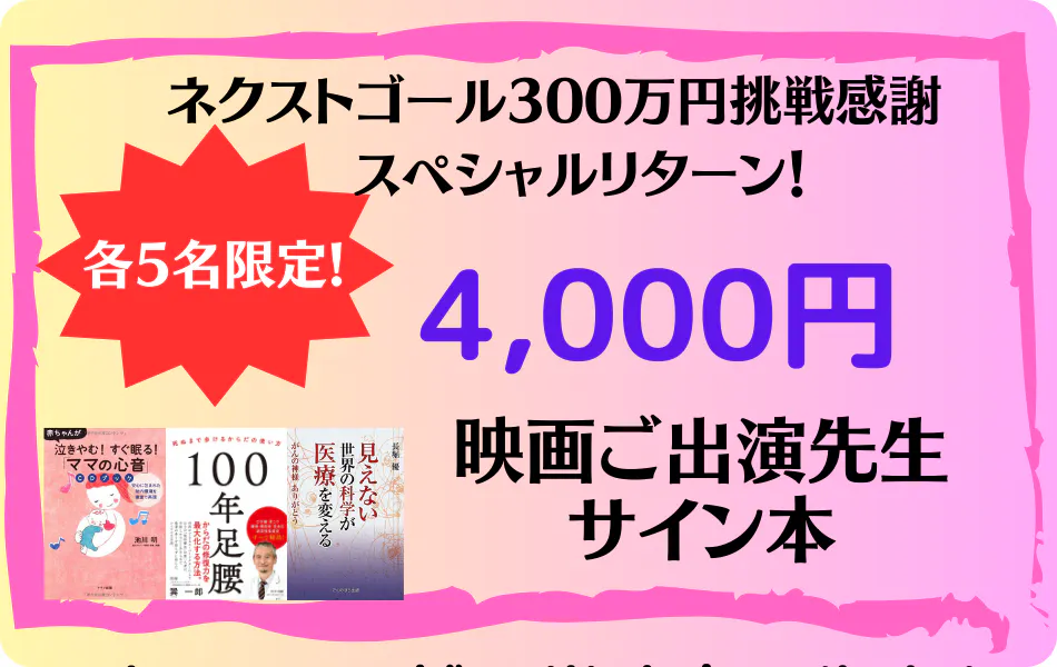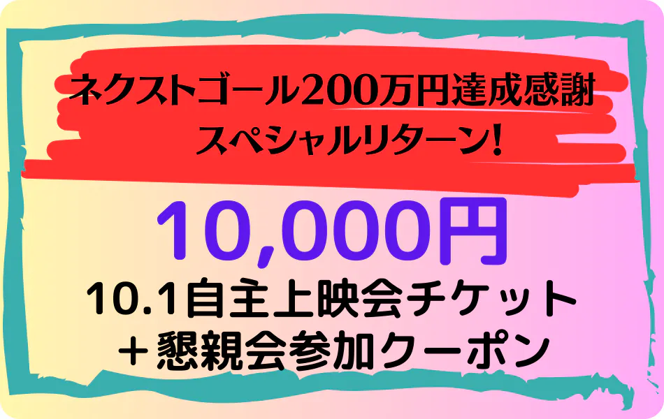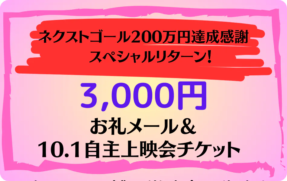 ご支援に感謝!ネクストゴール300万円挑戦中!10.1自主上映会&懇親会にスペシャルリターンでご参加いただけます!