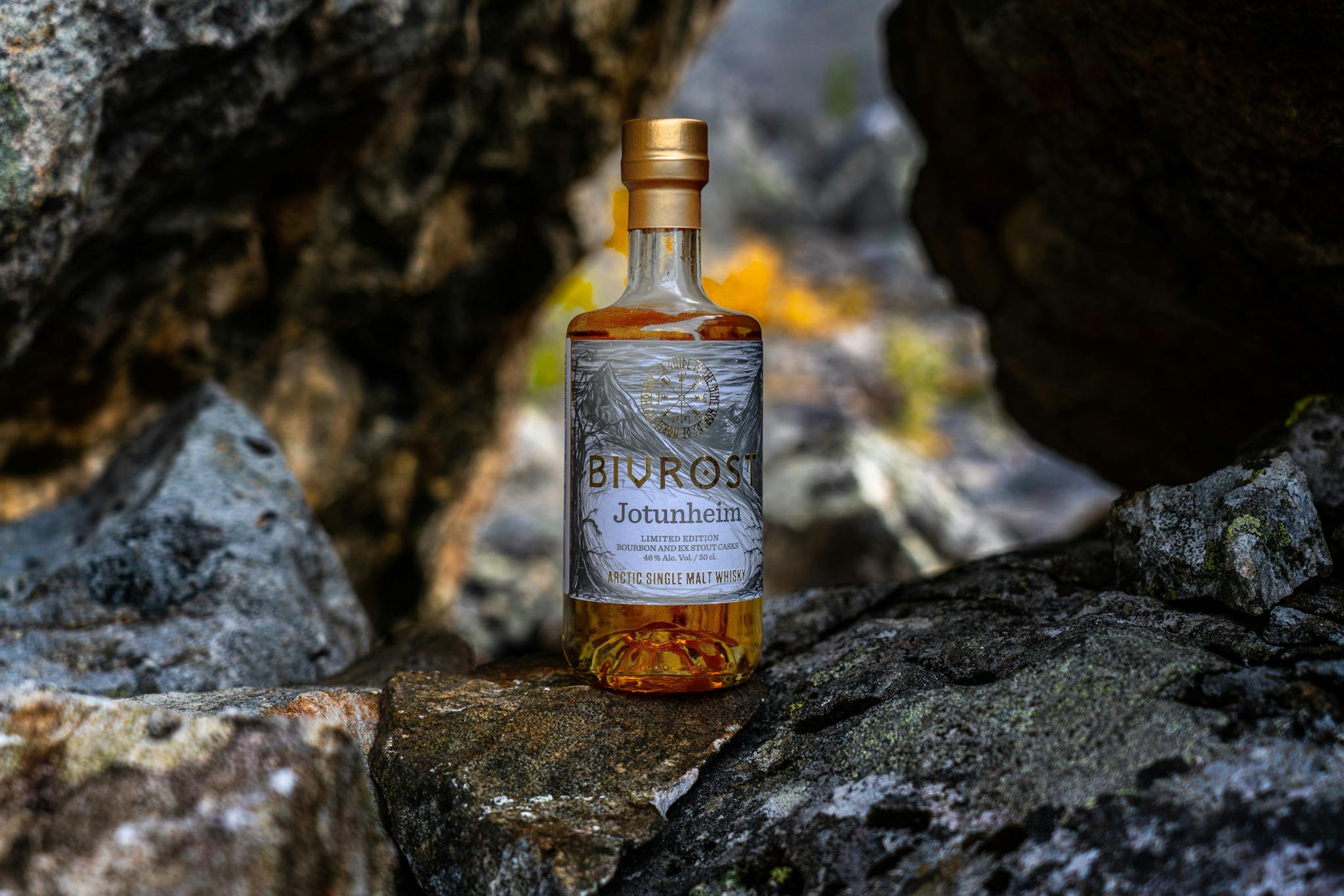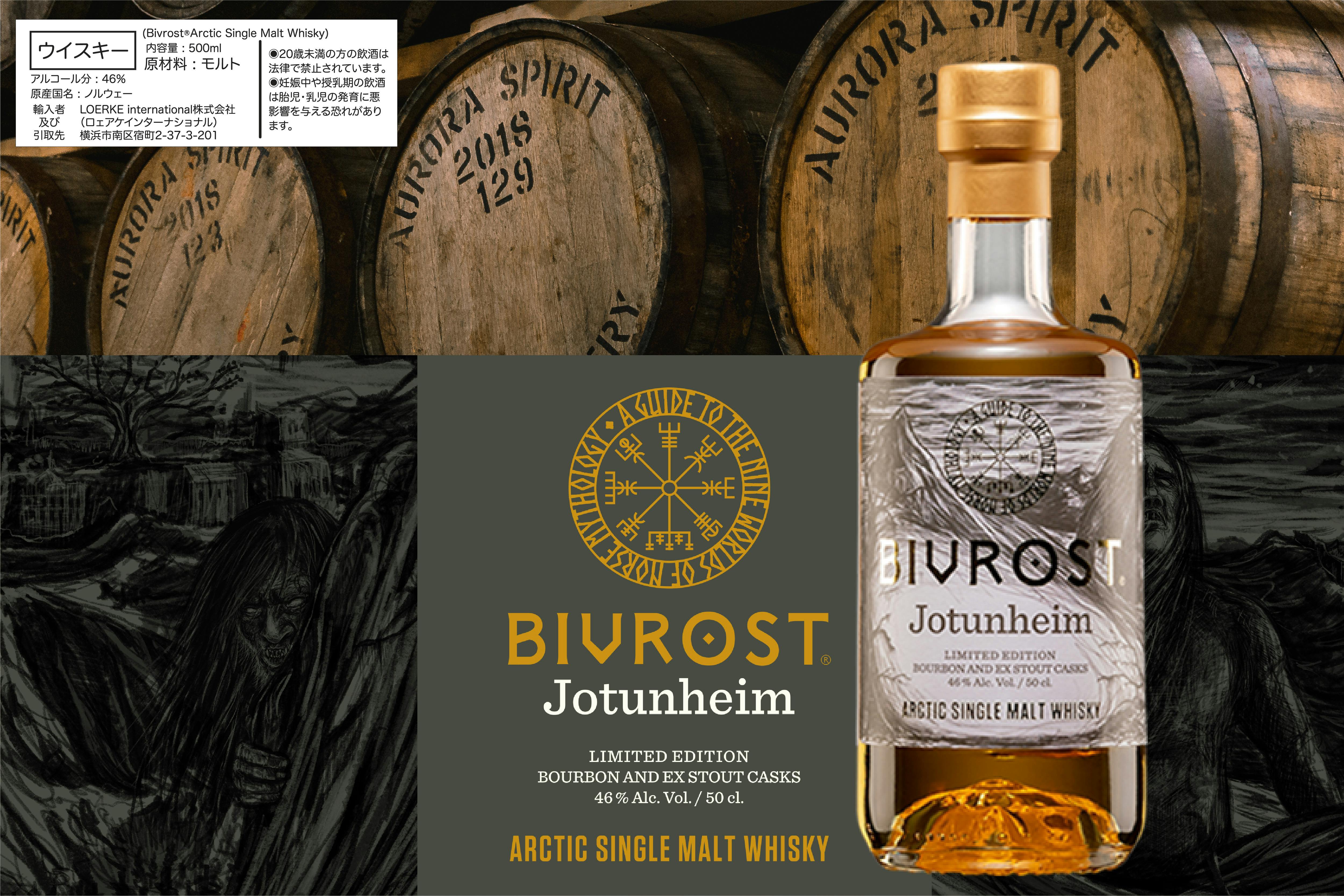 北緯69°のノルウェーの雄大なリンゲンアルプスの麓にあるオーロラの輝きの下で手作りされる、オーロラ・スピリット蒸溜所の「北欧神話の9つの世界」シリーズの4番目のウイスキーであるBIVROST ヨトゥンハイム 北極シングルモルトウイスキー。霜の巨人族と丘の巨人族が住む国「ヨトゥンハイム」をテーマに作られた限定シングルモルトウイスキー。ヨトゥンハイムの巨人たちは神々にとって宿敵であり、神々と巨人たちの戦いの物語は数多くみられる。 大部分が岩、荒野、密林等で構成されるヨトゥンハイムは、海に面した雪に覆われた地域にあるとされる。そんなヨトゥンハイムをイメージしたウイスキーは、北欧の大麦とリンゲンアルプスの氷河の融解水を使用して丁寧に作られ、厳選されたバーボンと元スタウトのビール樽で熟成される。