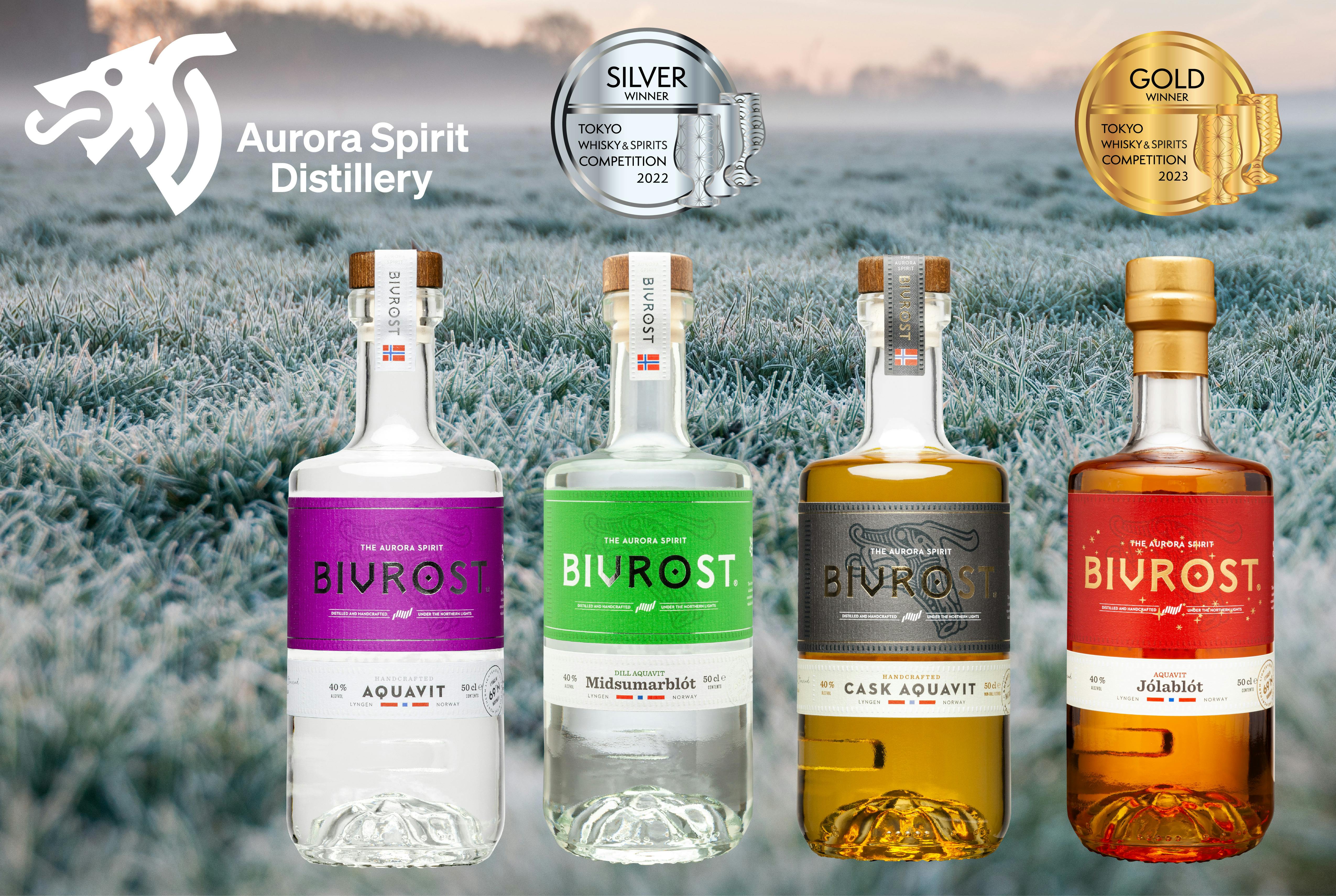 氷河の水で作られたオーロラ スピリットのアクアビットのラインナップは、ジャガイモベースのスピリッツに、地元ノルウェー北極圏の様々なハーブやベリーなどをボタニカルに使用し、どれも本当に香り高く、しかも非常に飲みやすいアクアビットに仕上がっている。芳ばしいキャラウェイと北極ベリーが非常に心地よい「ヨーラブロート」が今年の東京ウイスキー&スピリッツコンペティション2023にて金賞を受賞(詳細はこちら)するなど、そのおいしさとクオリティは太鼓判付きだ。