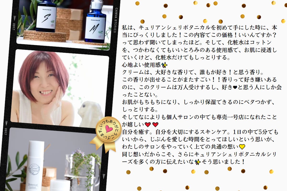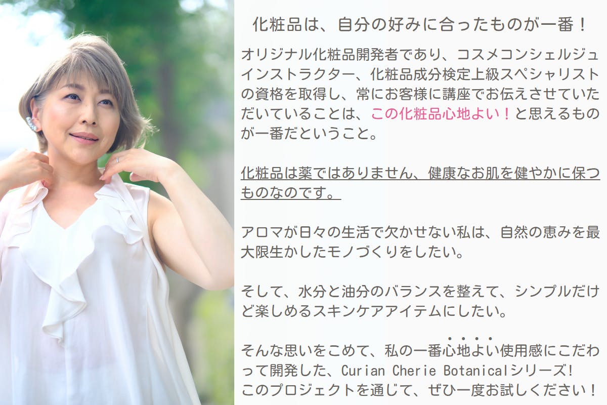 キュリアンシェリ化粧品開発者の川原理永佳と申します。
