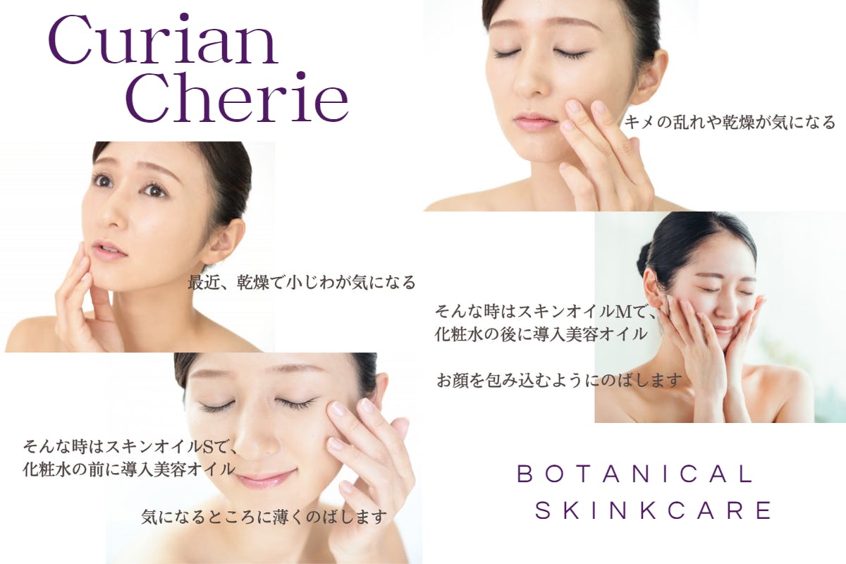 キュリアンでは、サンプルを作成していないので、今まで一部の店舗の店頭か、取扱いサロンでお試しいただくしかできなかったのですが、スキンオイルMのミニサイズを作成したところ、持ち運びにとても便利で、夕方の乾燥したお肌に最適!とのお声も多くいただきました。