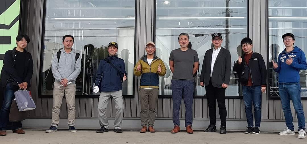 左手前が山上会長。伊勢角屋麦酒さんでの醸造実習を終えての乾杯!