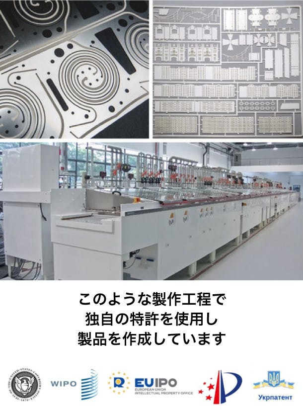当社の生産ラインでは、高出力レーザー切断とニブリング技術が使用されています。レーザービームは高密度のエネルギーを提供し、パーツの密集した部分の一部を切り取ることを可能にします。(ウクライナで特許を取得)