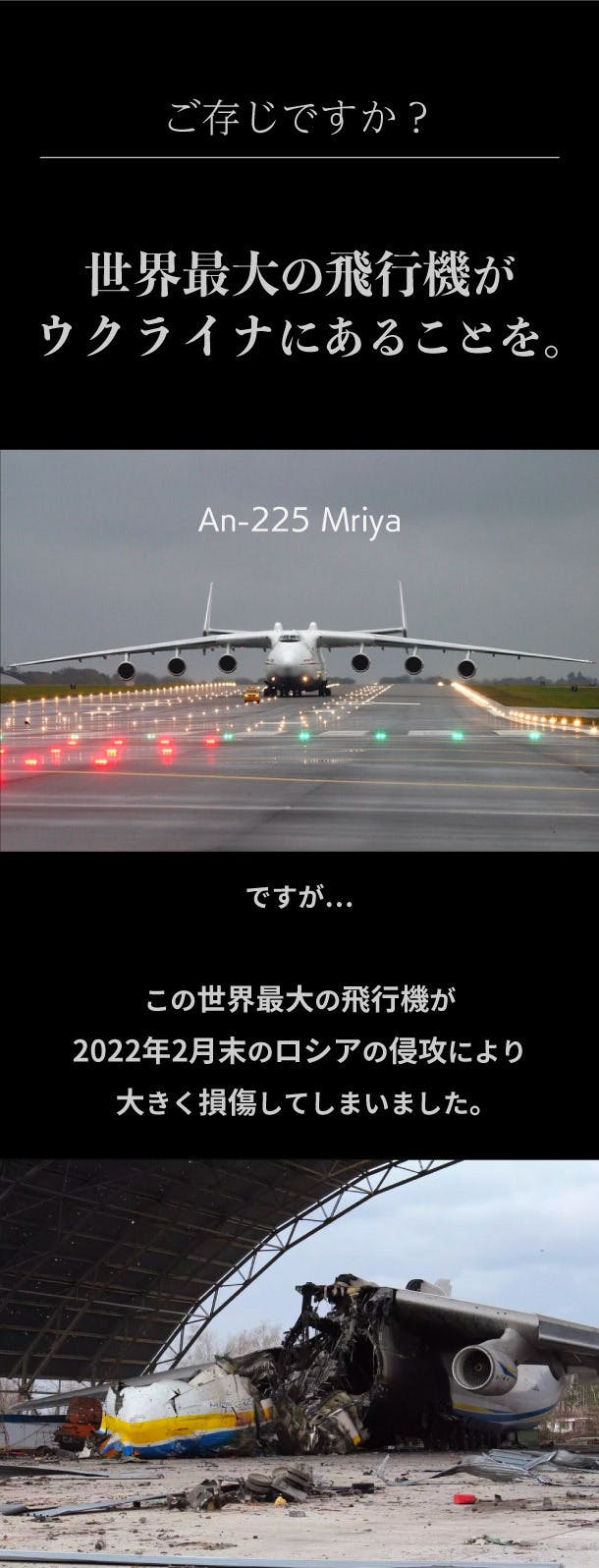 多くの国民に愛されていた【Mriya】。街中にもその勇姿が描かれています。多くの子供達の憧れでもあった【Mriya】。あなたのご支援がそんな国民の励みになります。