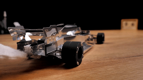 ゼンマイの力で実際にテーブルの上や床を走らせることができます。