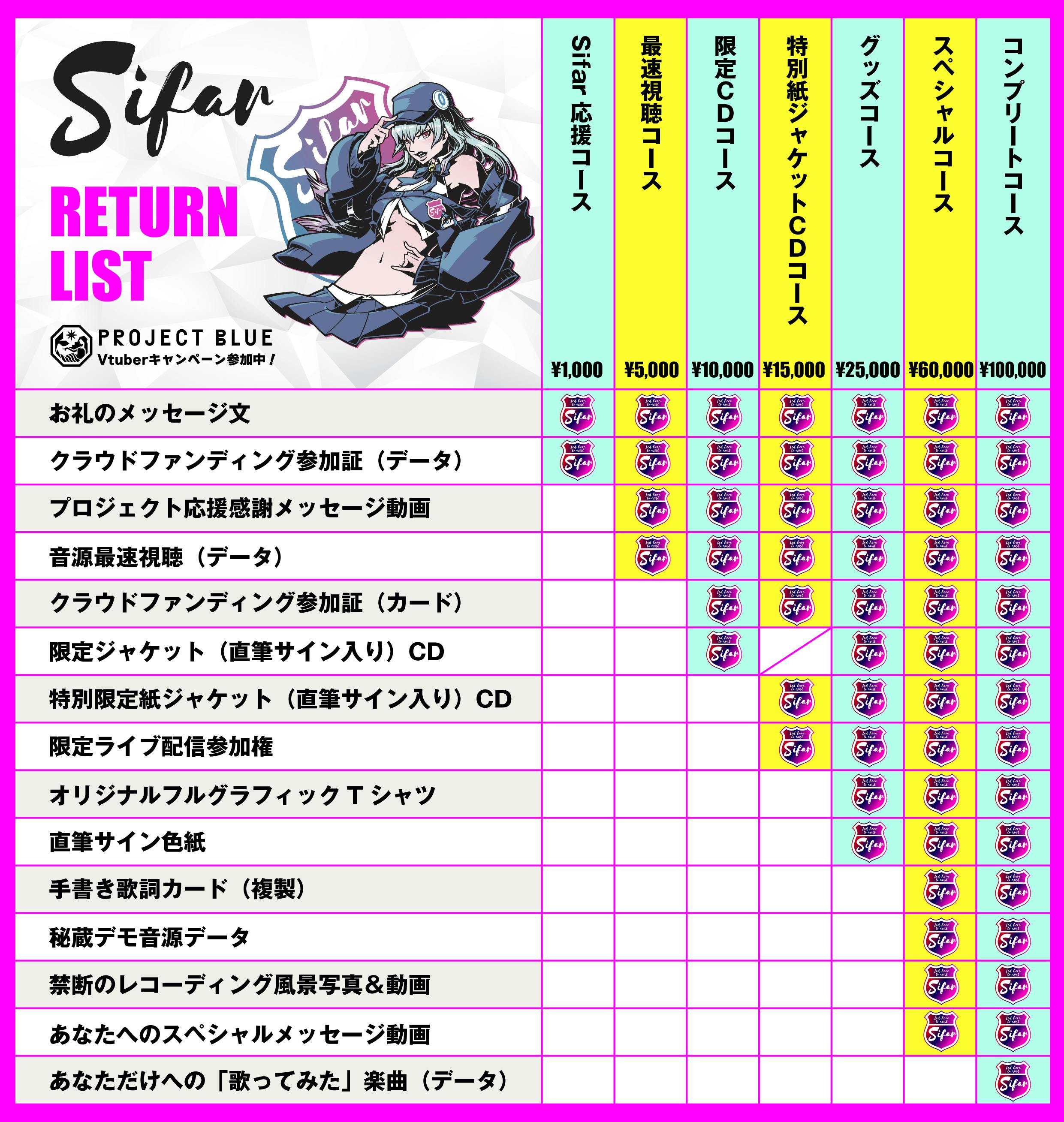 Sifarへ歌ってほしい曲をリクエストできます。楽曲は支援していただけた方のみにデータURLをCAMPFIREメッセージにてお送りいたします。