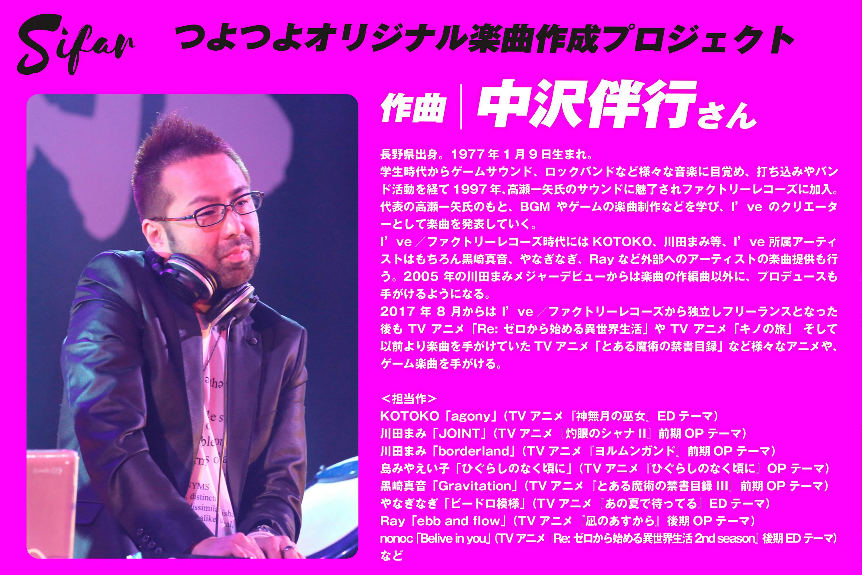 中沢さんといえばKOTOKOさん、川田まみさん、黒崎真音さん、やなぎなぎさん、Rayさん、Sifarもなかよしのnonocちゃんなどの超実力派アーティストさんへ楽曲提供をされているスーパーアーティスト様!