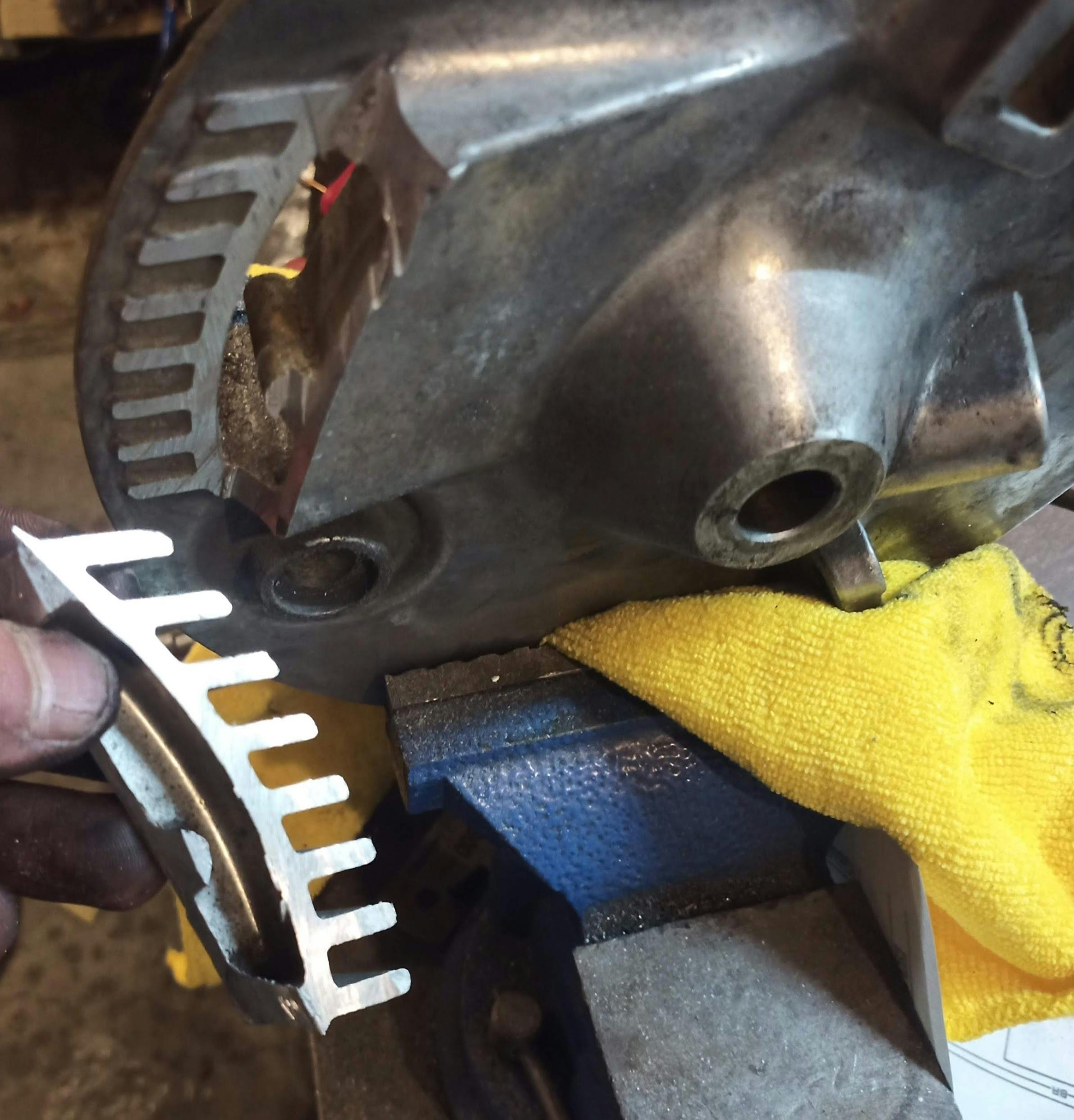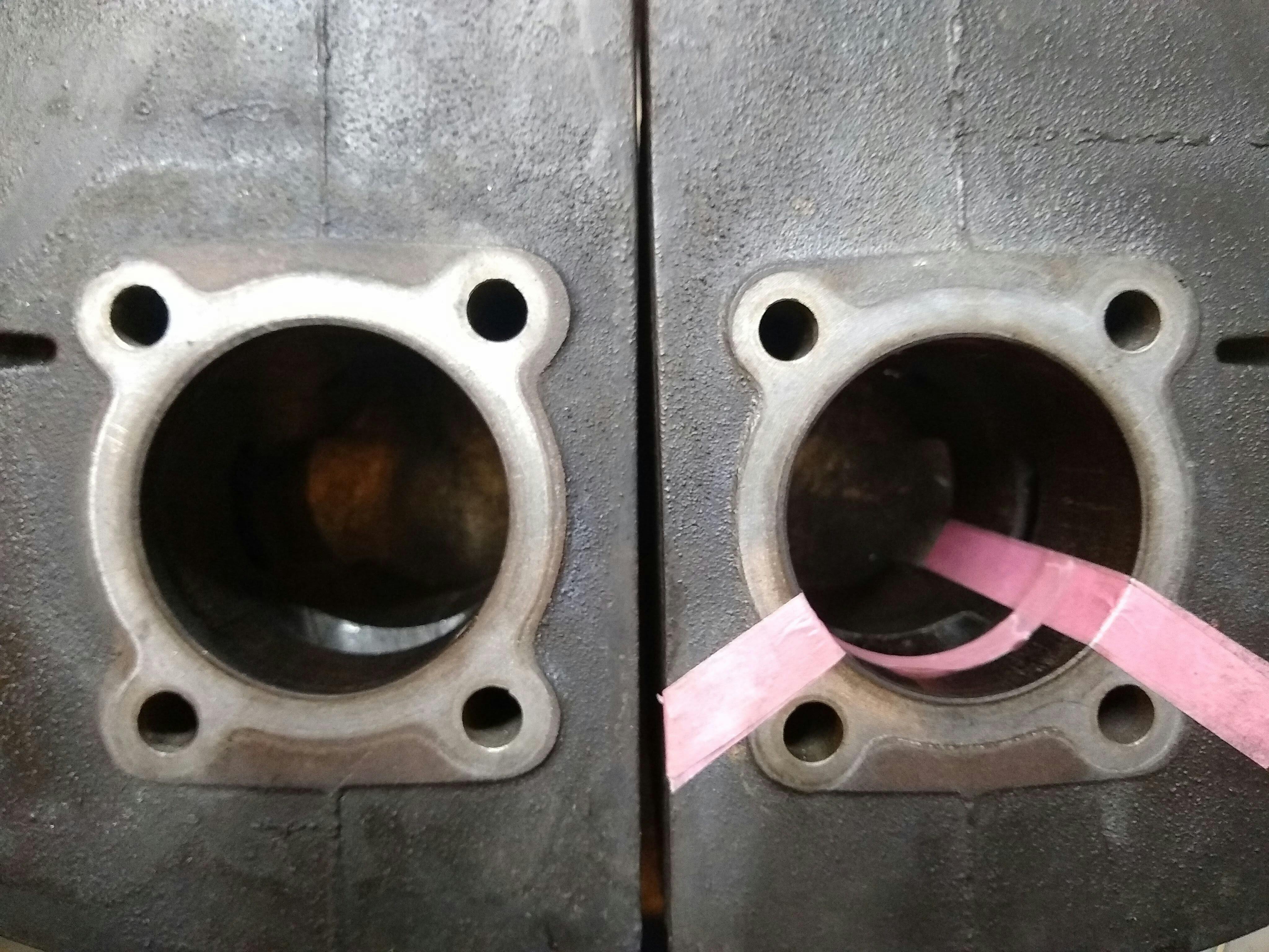 2ストロークエンジンのシリンダーをボーリング加工した際のポート面取り、修正等のエンジン加工作業。ポート加工もご相談下さい(面取り・修正:一気筒/1.0h/¥8,000~、ポート加工:応相談)