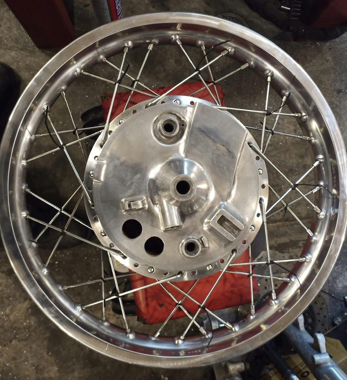 ・オートバイスポークホイールの張り替え(1本/1.5h/¥12,000)、ブレーキパネルのエアスクープ加工(1枚/2.5h/¥20,000~)、ハブの塗装剥離、バフ掛け及び穴開けドレスアップ加工(1本/1.5h/スポーク張替料金+¥12,000~)