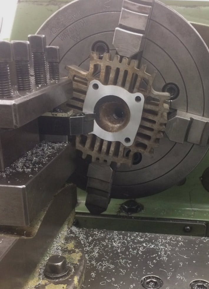 このようなスペーサーやキャブレター等のエンジン関連パーツなど、丸い部品を製品クオリティに美しく高精度に加工する為には旋盤が欠かせません。