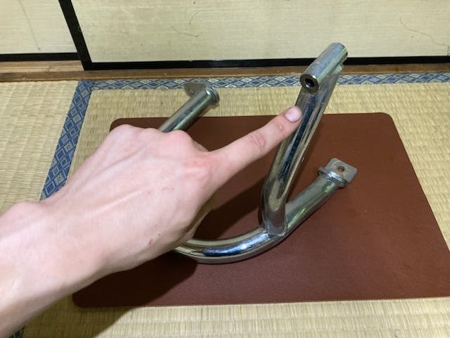 上記の写真はホンダ・ワルキューレのエンジンガードですが、概ね溶接板金の範囲内で作成可能ではございますが指さしている部分は旋盤によるカラーの制作が必要になります。