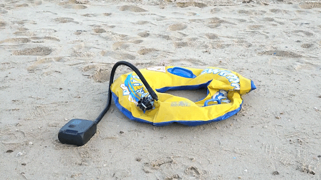 手のひらサイズなのに、「NW02-P」の対応可能な空気圧範囲は驚きの6~137kPa(1~20PSI)、最大空気流量は100L/minで、ほとんどの空気入れが必要なものに対応可能。浮き輪やバランスボールはもちろん、一般的な電動エアポンプでは対応できないスタンドアップパドルボード(SUP)でも素早く膨らませます。