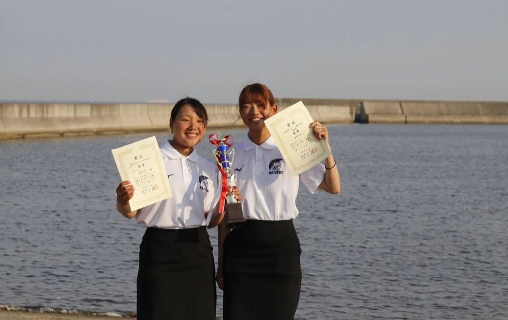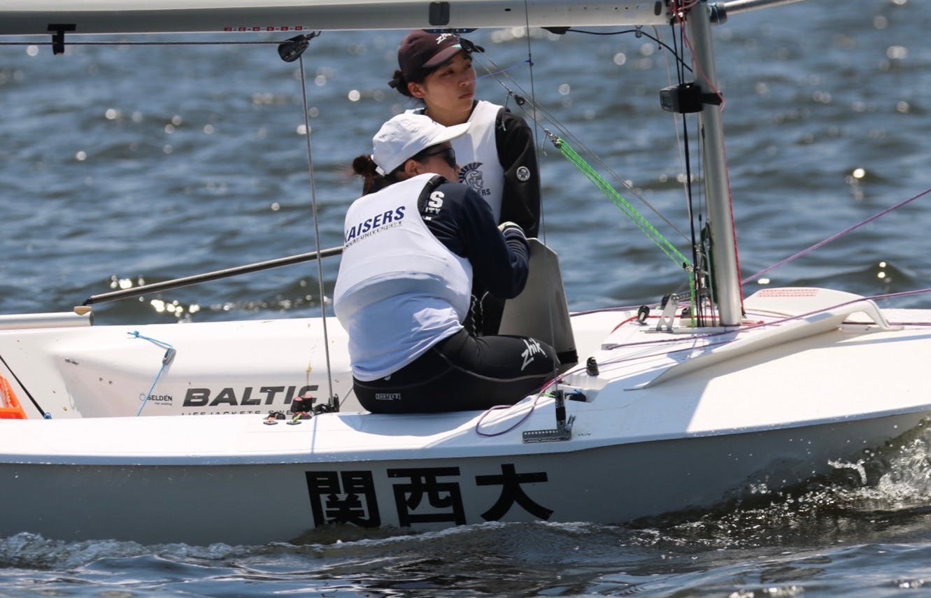 ペア結成2年目の2人は普段から仲が良く、関西女子インカレでもカットレース(5レース以上実施時に最低順位レースをカットできる)を除けば全レースでオールトップフィニッシュを成し遂げました。赤松は昨年度は1回生ながらクラス入賞目前の8位に食い込んでおり、今年度は先輩・佐田と共にクラス優勝、また大学団体優勝を目指します!