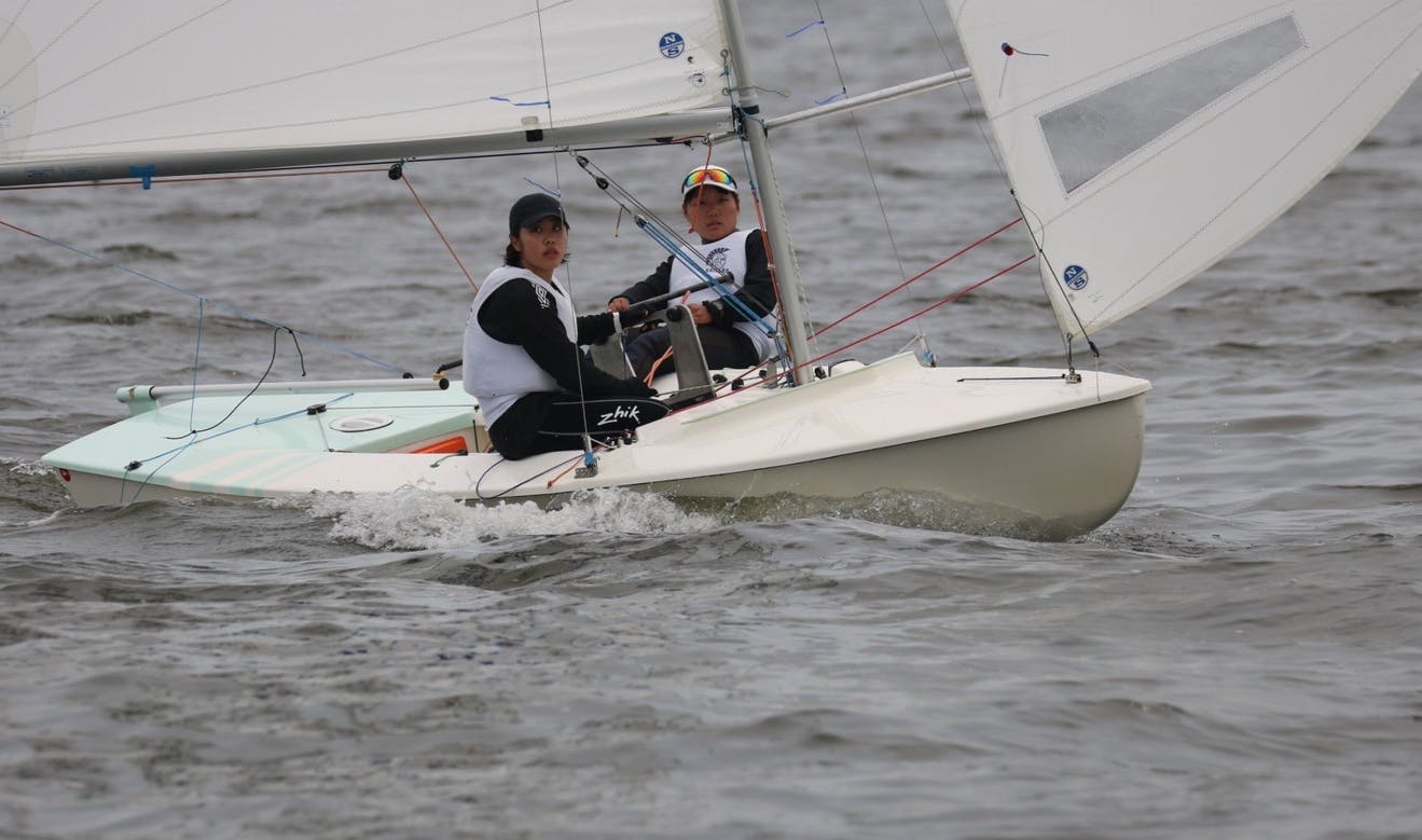 大学体育会ヨット部が参加する大会は、2人で操船する2クラスのヨット(470クラスとSnipeクラス)を用いますが、同大会に男子ペア、男女ペア、女子ペアが混走で競い合う非常に珍しい競技となっています。同様に珍しくもあるのが、男子ペアだけの大会がない一方で、女子ペアだけの大会があるということ。つまり、女子の方が目指すべき大会が多い!ということになります。