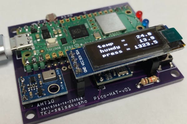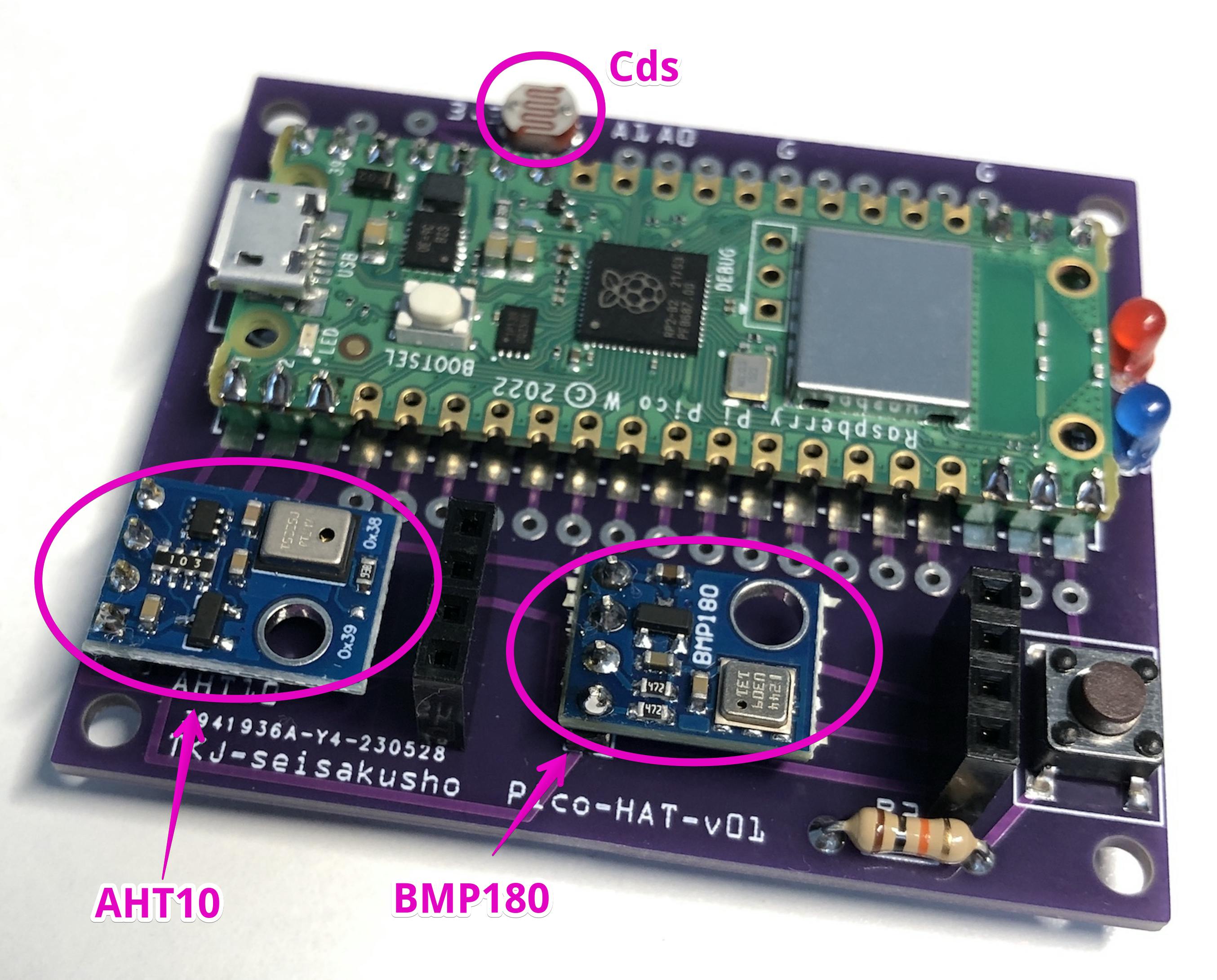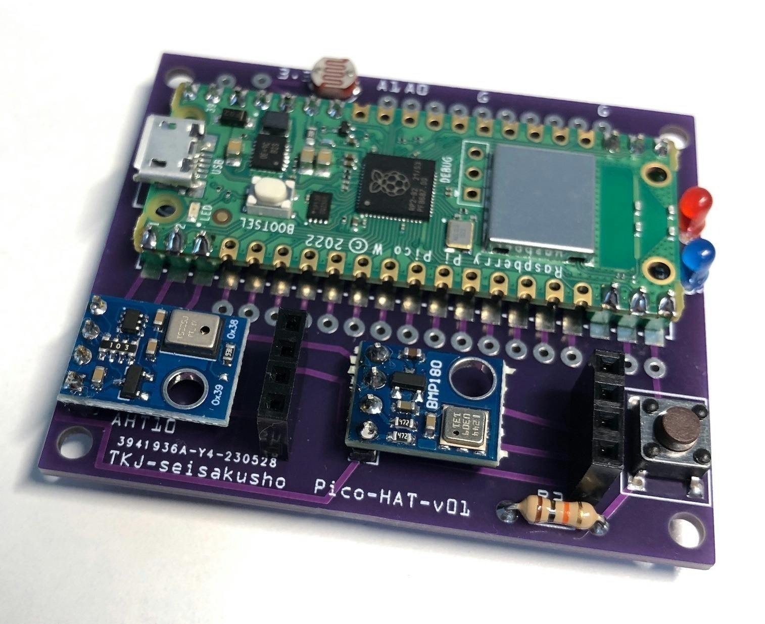 Raspberry Pi PicoWを使った環境測定基板(picoSensor)。
