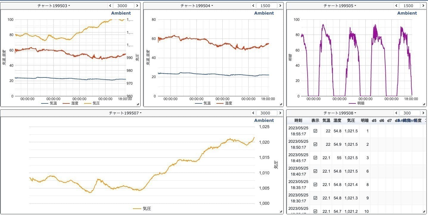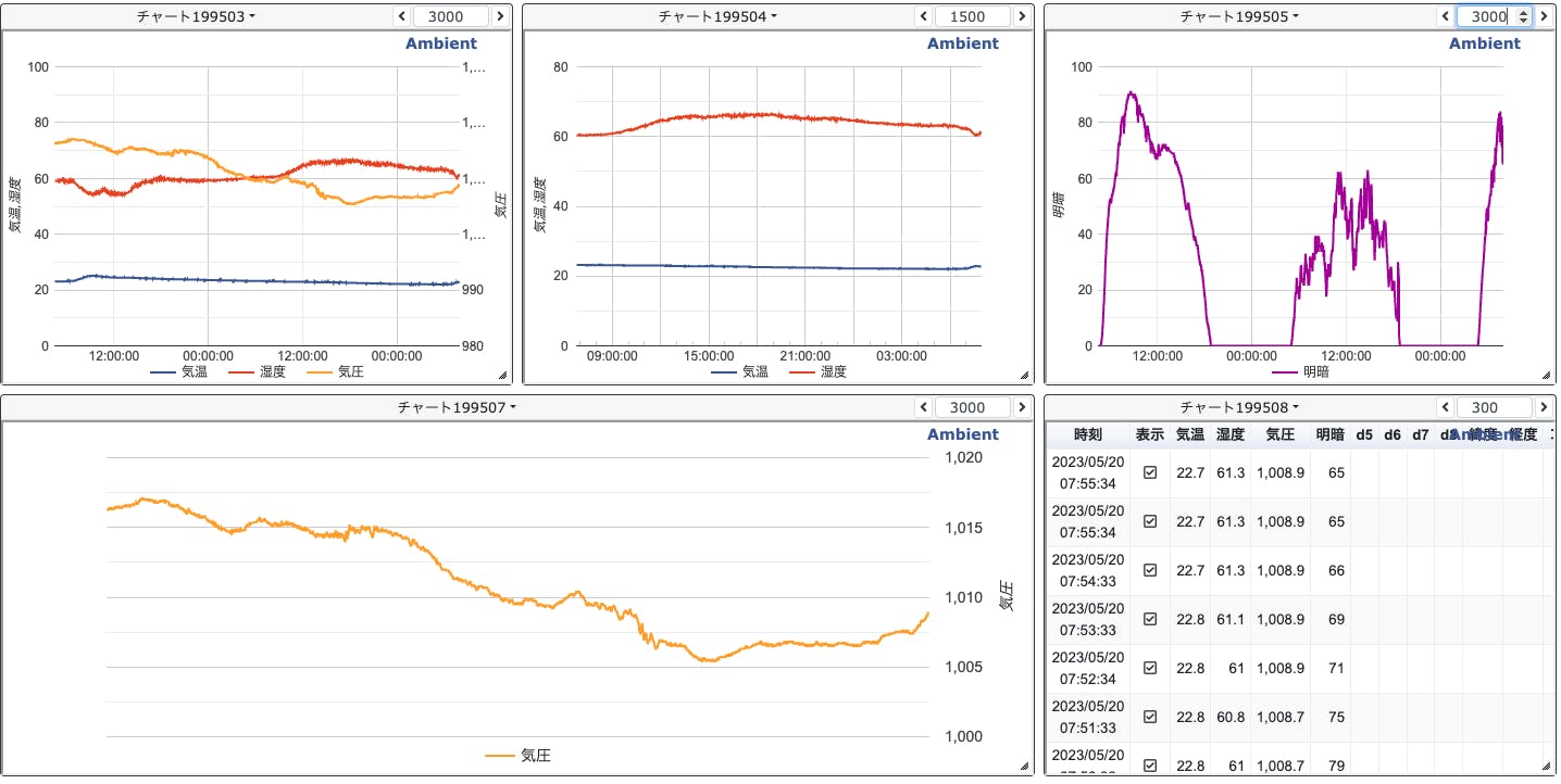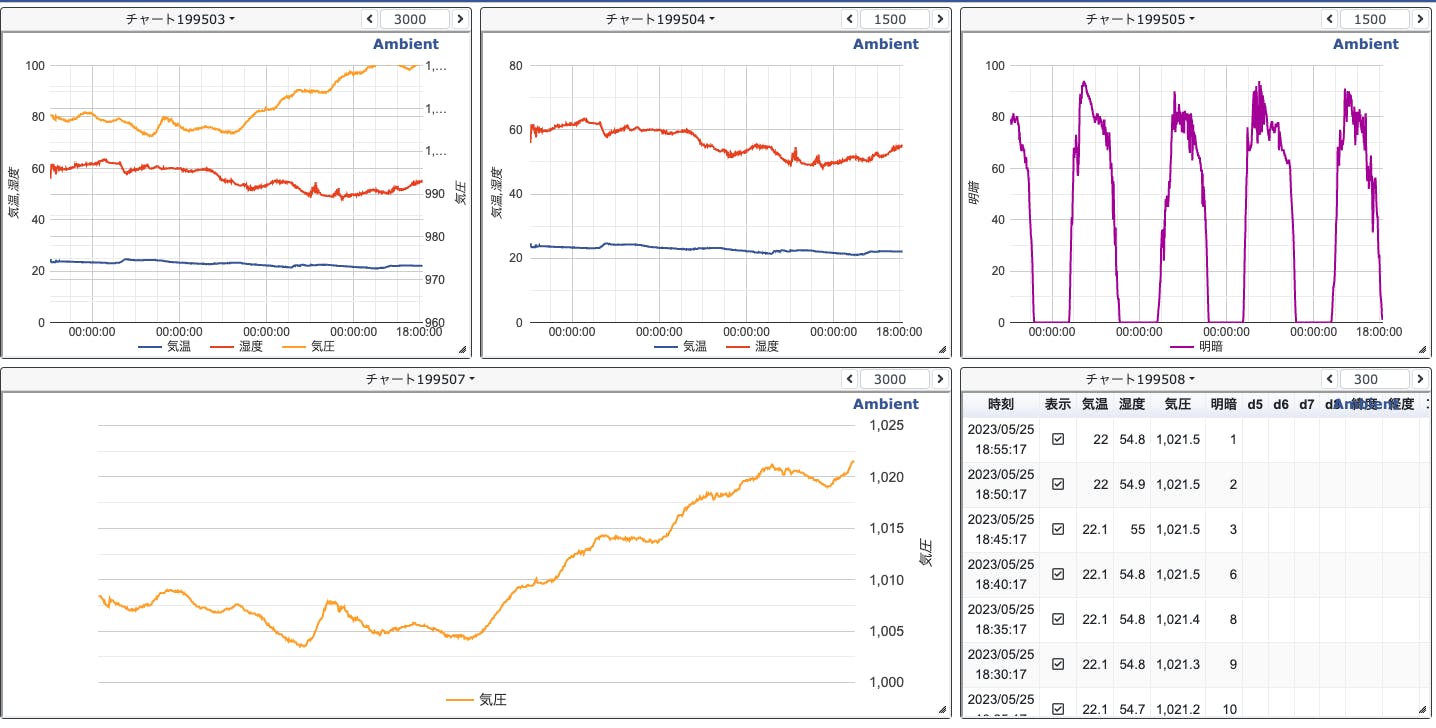 Web上のデータ表示サービスambientへデータを送信し、お好みのダッシュボード表示が可能です。