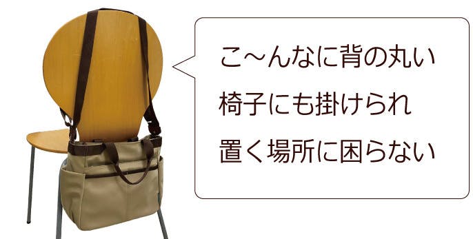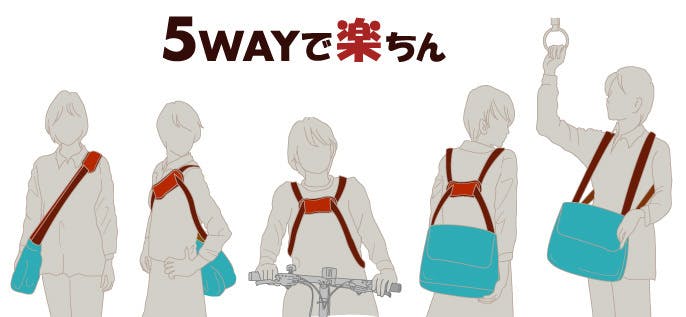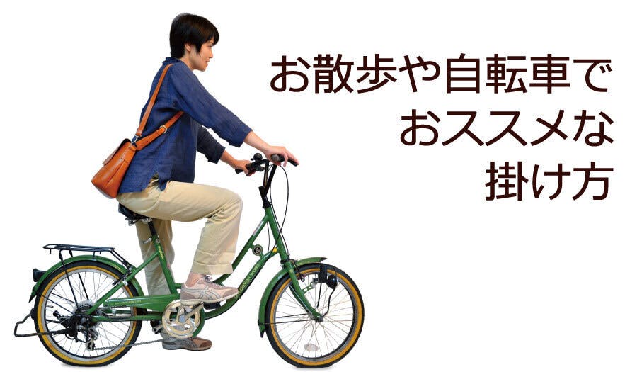 見た目、リュックよりだいぶ下のように感じるため、揺れないか?重くないか?という心配も。でも実際に掛けてみると、同じ重さをリュックにした時とさほど変わらないとの意見がほとんどで、むしろ軽く感じる人も多いです。ただ、大荷物の時にはこの掛け方には限界がありますので無理ない大きさをおススメします。現在の商品も適正なサイズの範囲内で開発しています。