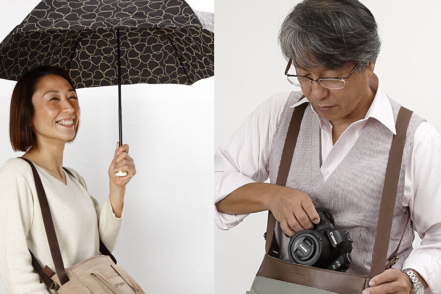 そしてモノの出し入れがこーんなにラクラク! お買い物で財布がぱぱっと出せてすすっとしまえます。病院で診察券もATMで通帳やカードも、空港でチケットやパスポートも… ライブやテーマパーク、スポーツ観戦などの一連の動作も、スムーズそのものですね。