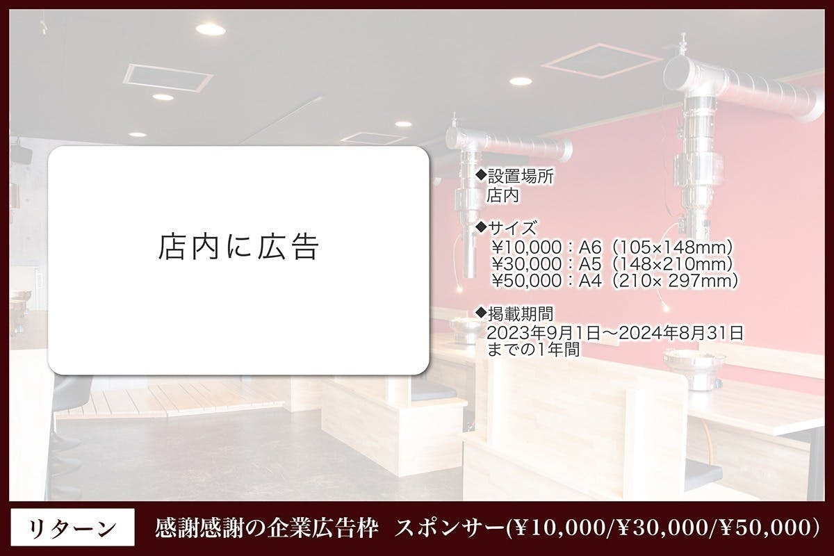 手数料、原価を差し引いた金額は、焼肉 清水の存在をより多くの方に知ってもらえるよう、