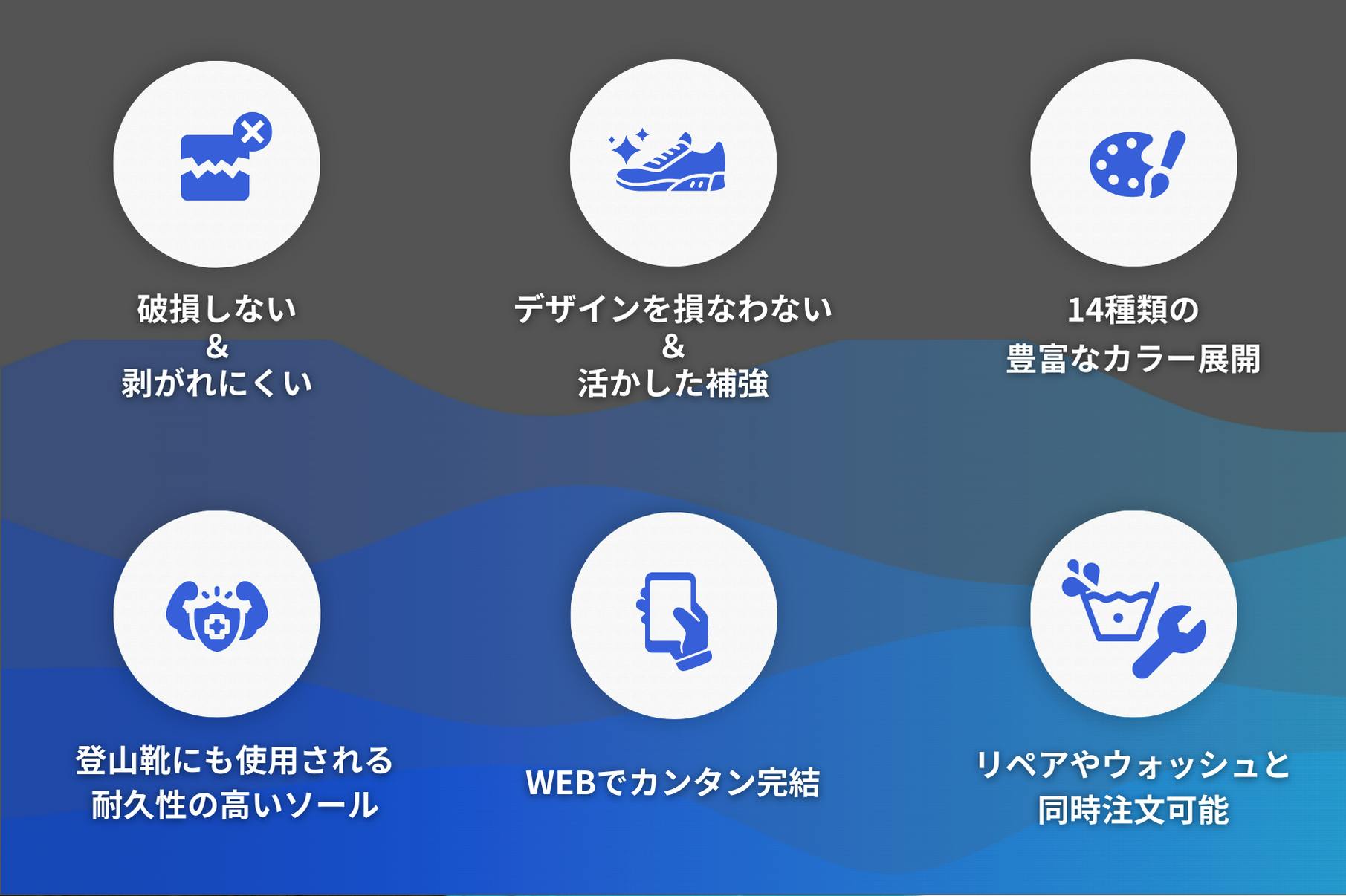 大切なスニーカーを一生履き続けられるように、「SNISH Sole(スニッシュソール)」は、あなたのお気に入りのスニーカーを守ります。