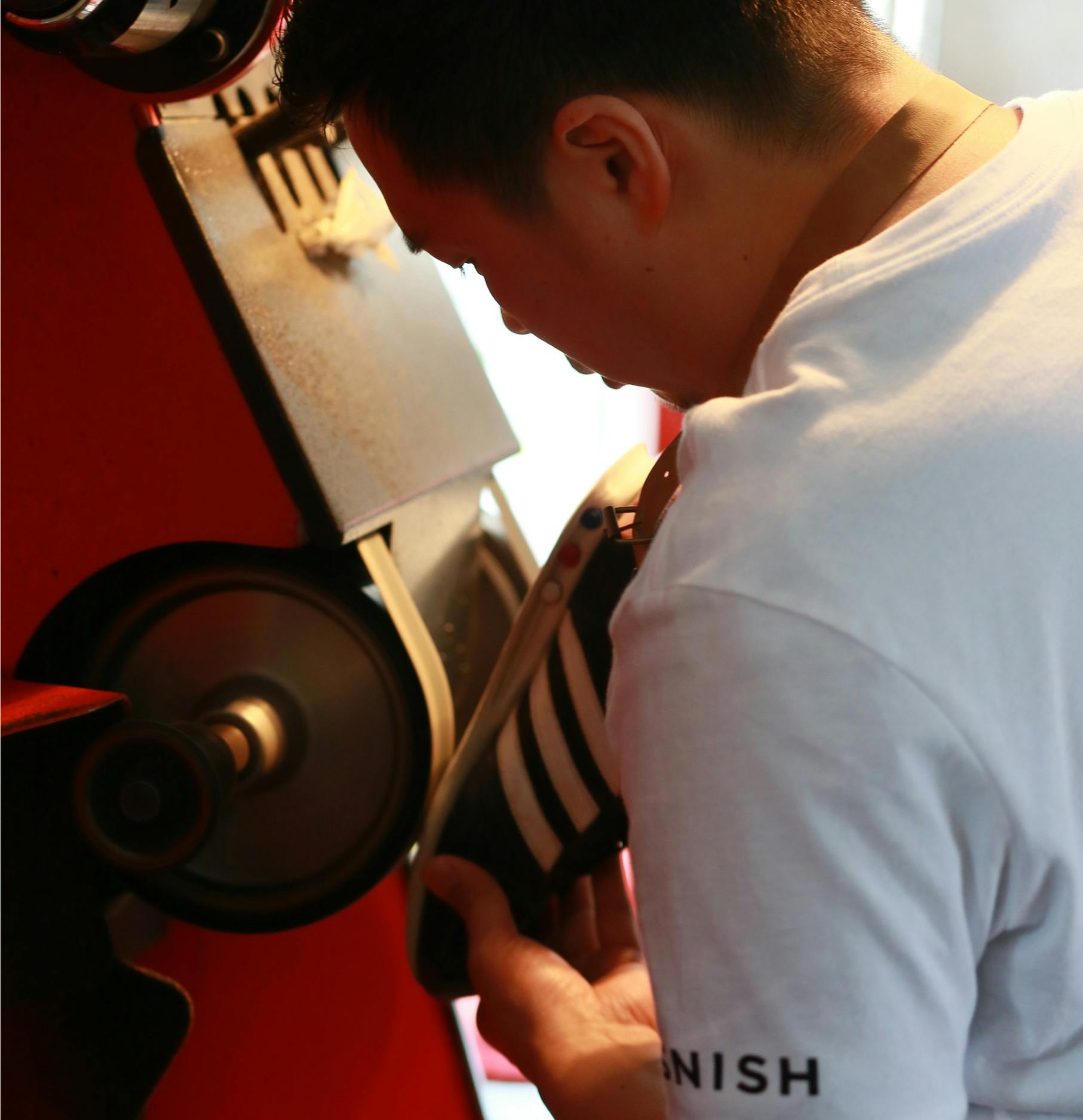 熟練の職人技術によりスニーカーのデザインに合わせた「最も美しいシルエット」へ導きます。