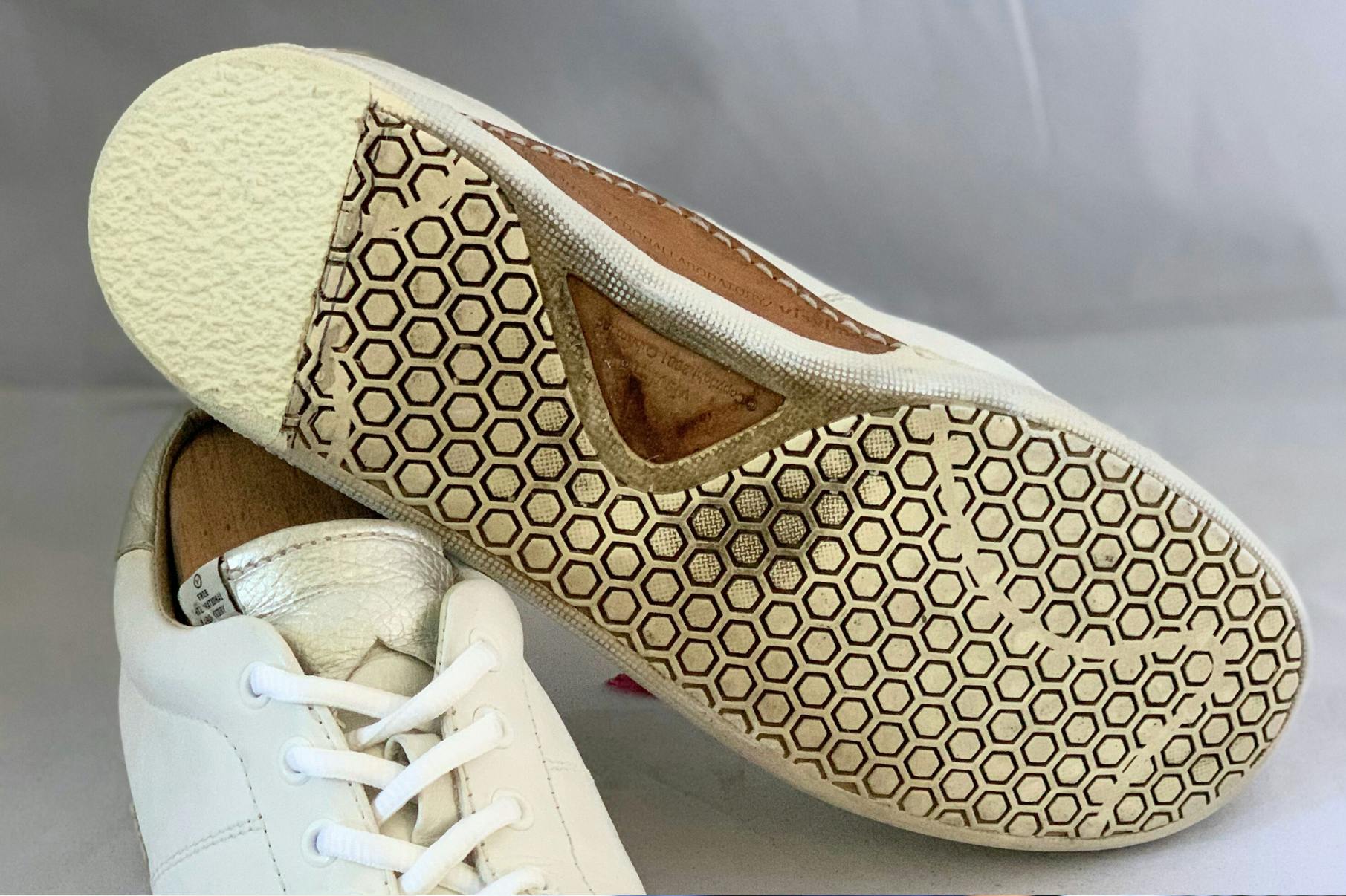 かかとなどスニーカーの削れてしまった部分を埋め立てた後、オールソール補強を行うサービス。