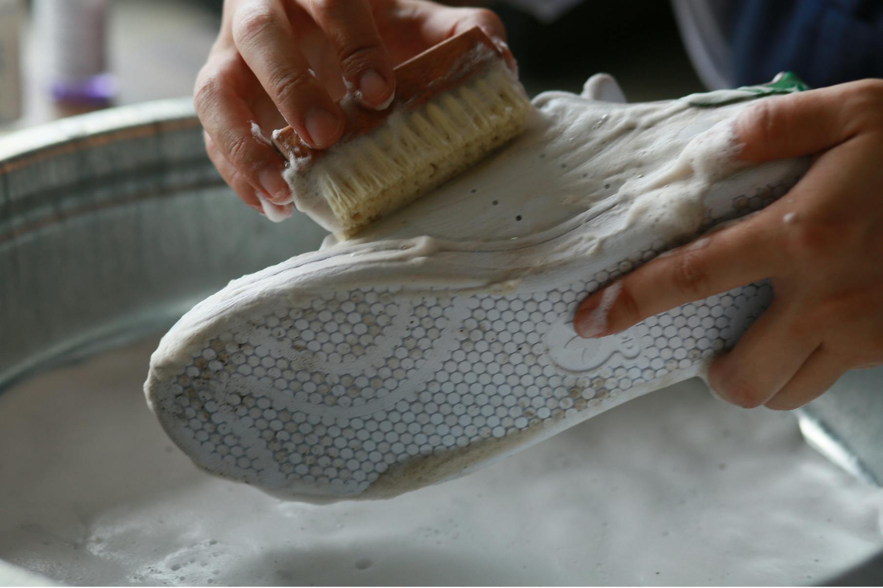スニーカーの素材に合わせた天然由来の洗剤を使用して、靴職人が一足一足丁寧に手洗いします。