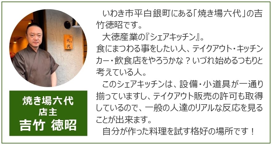 今回、「大徳産業」の店舗の隣にいわき市で初めての「シェアキッチン」を作りました。
