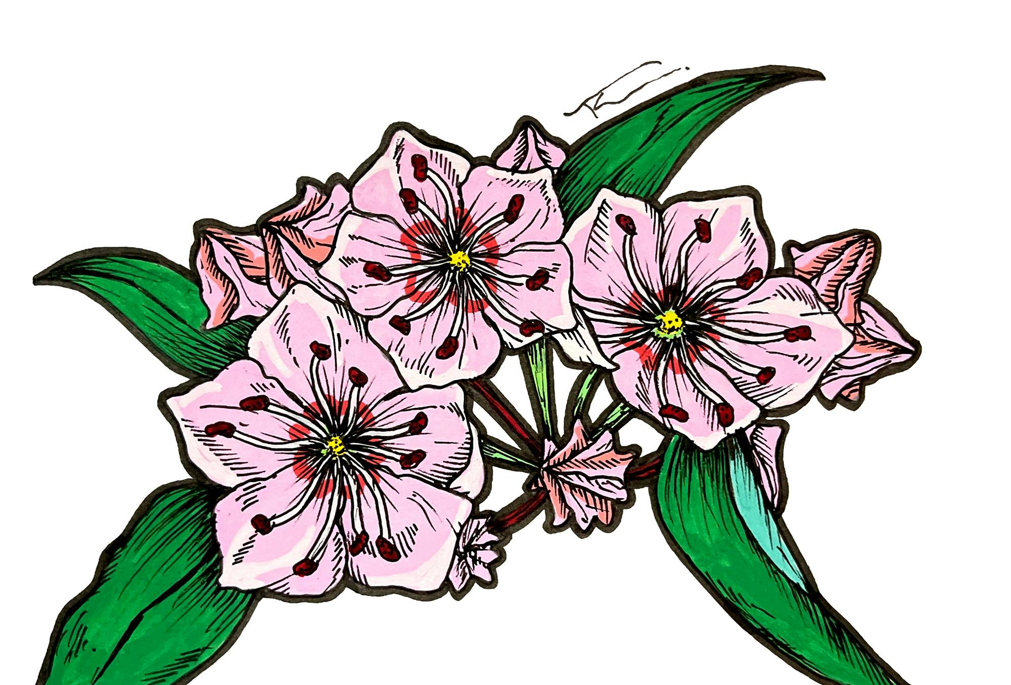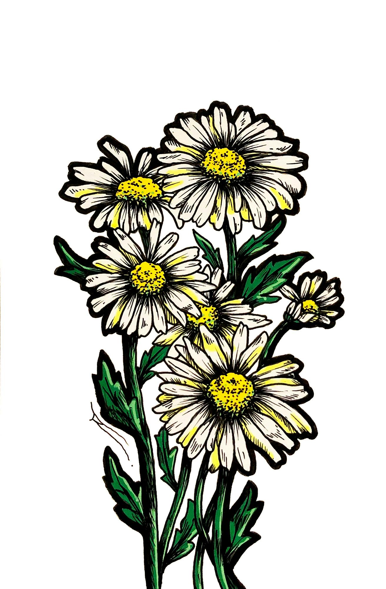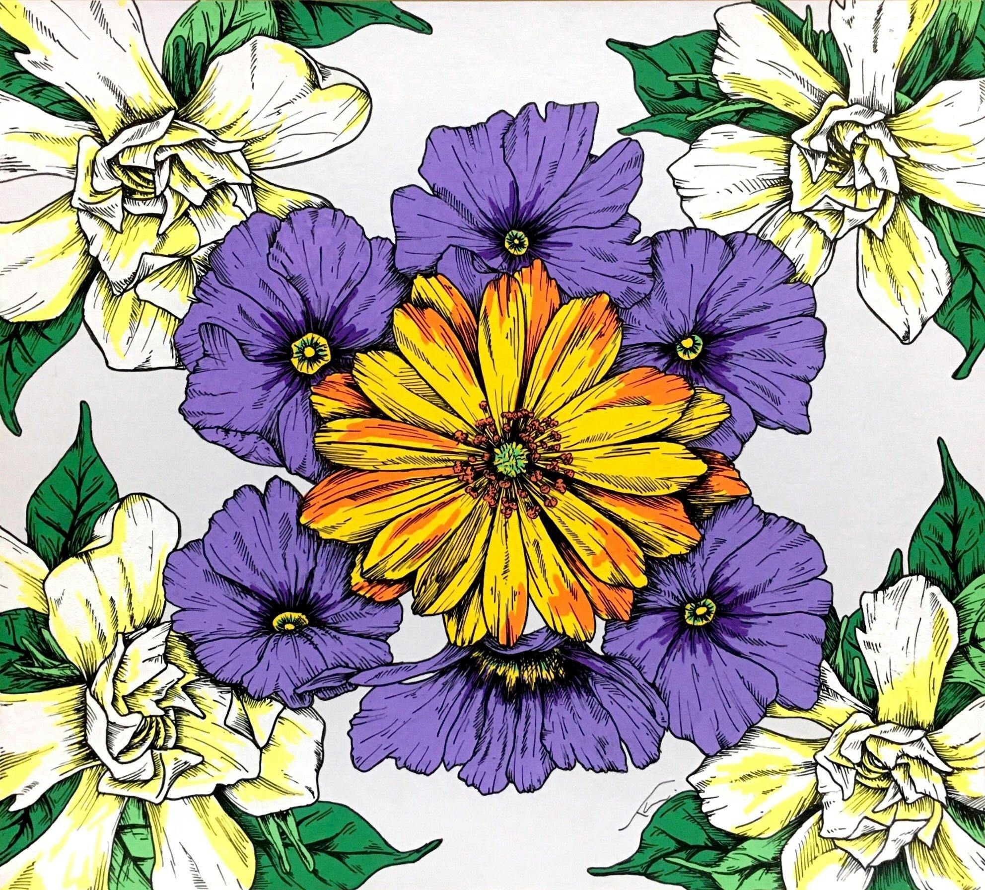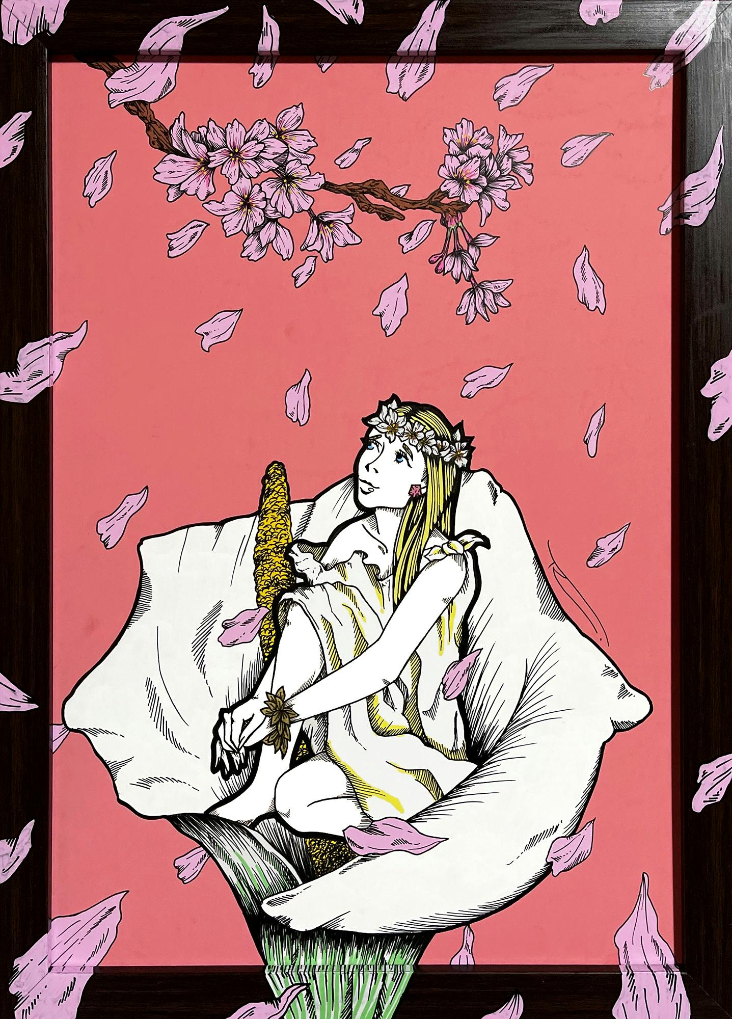お花と女性をテーマに水性カラーマーカーポスカを使用して描いてます。